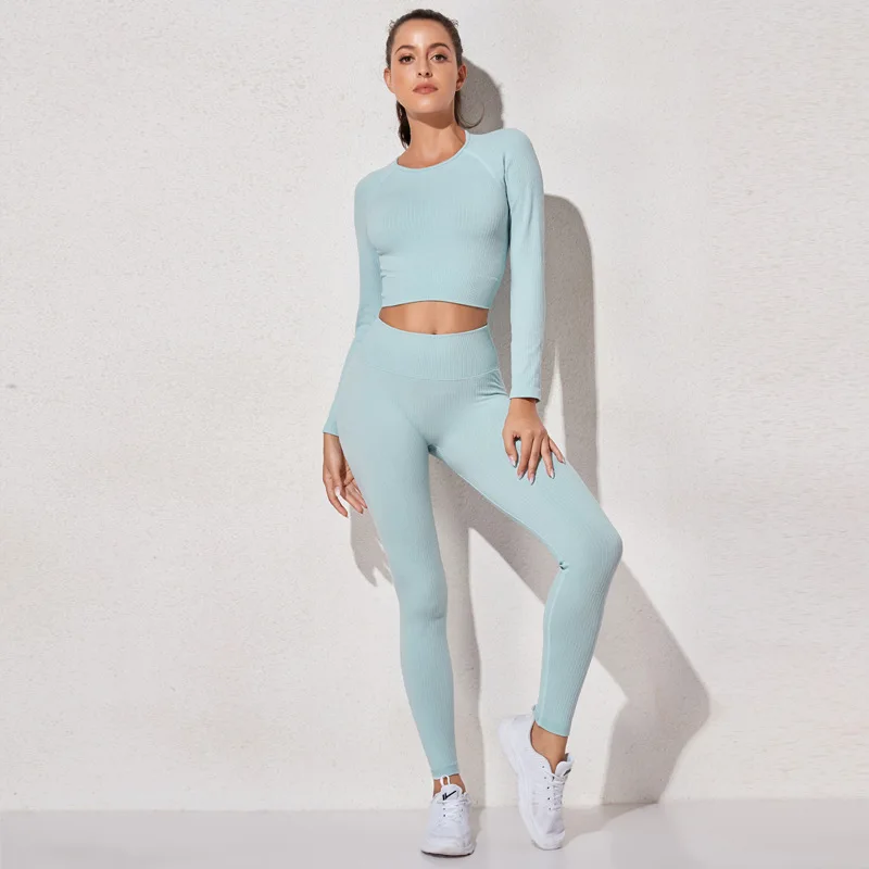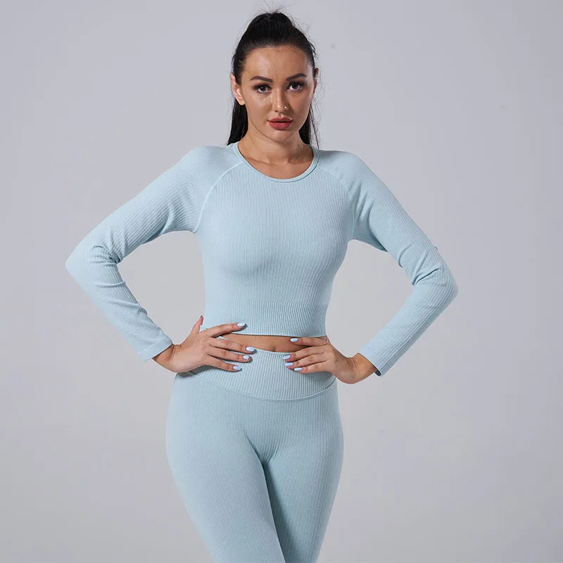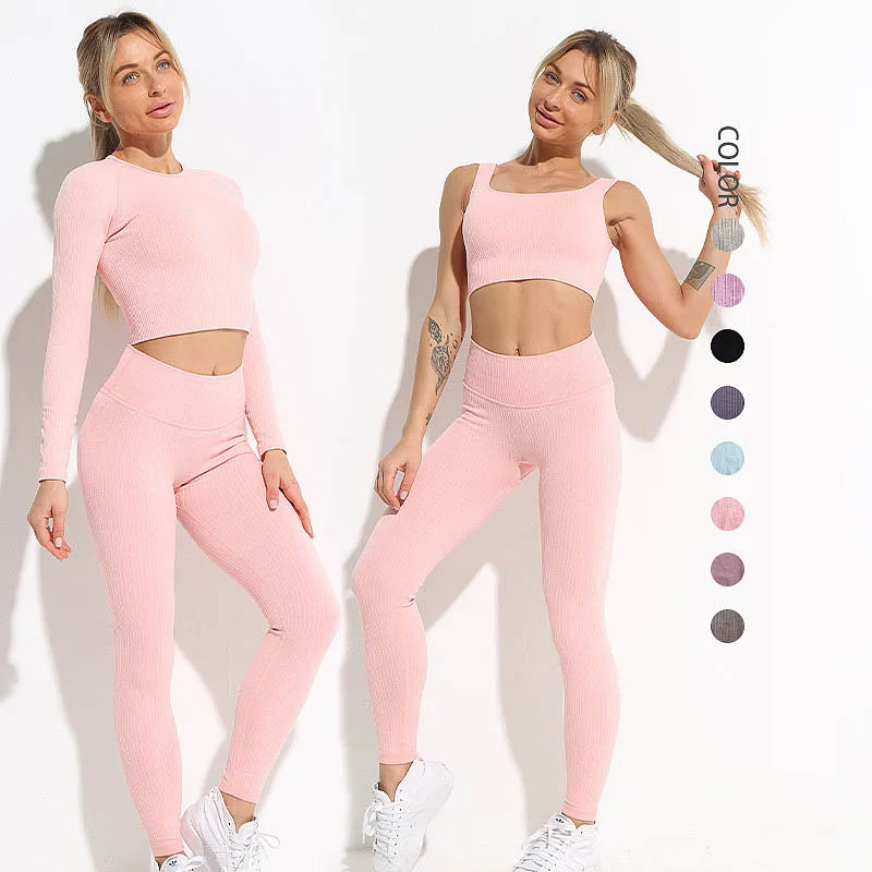 Бесшовная спортивная одежда, женская одежда для фитнеса, женский спортивный костюм, спортивные Леггинсы, комплект из 2 предметов, Женский комплект для йоги