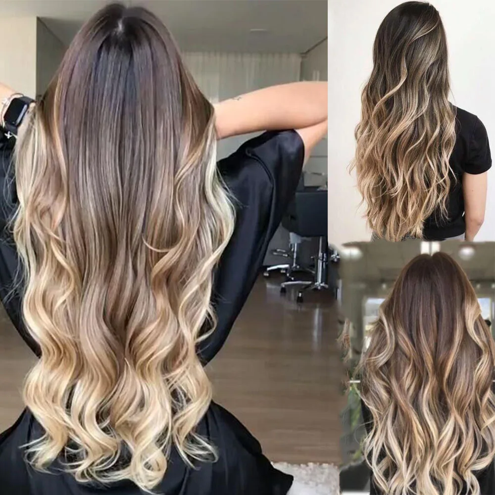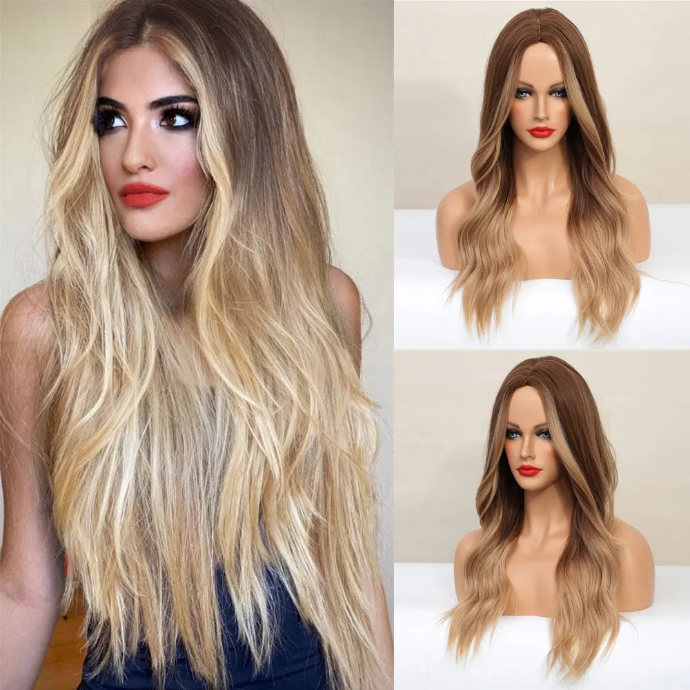 【Широкое применение 】 парик средней части, 2 тона цвета, естественный вид длинного волнистого парика. (Примечание: небольшая разница в цвете между различными мониторами) Длина: 24 дюйма. Это ваш лучший выбор для повседневной носки, работы, свиданий, концертов, косплея, костюмов, тематических вечеринок, видеосъемки или просто для изменения внешнего вида.