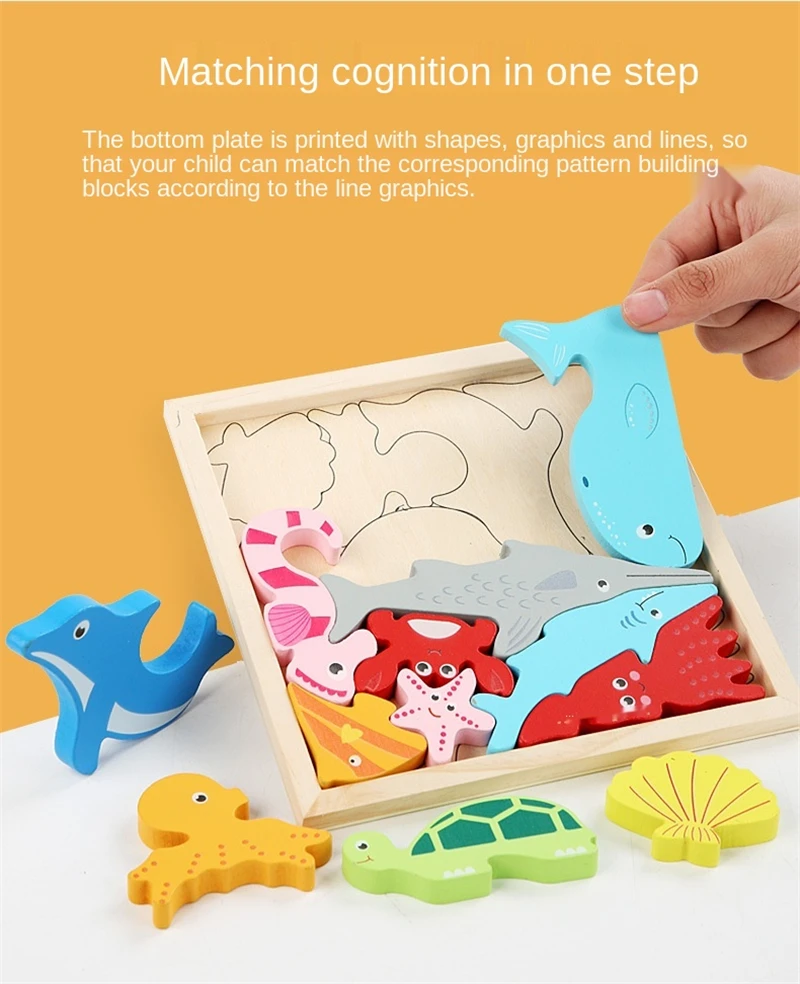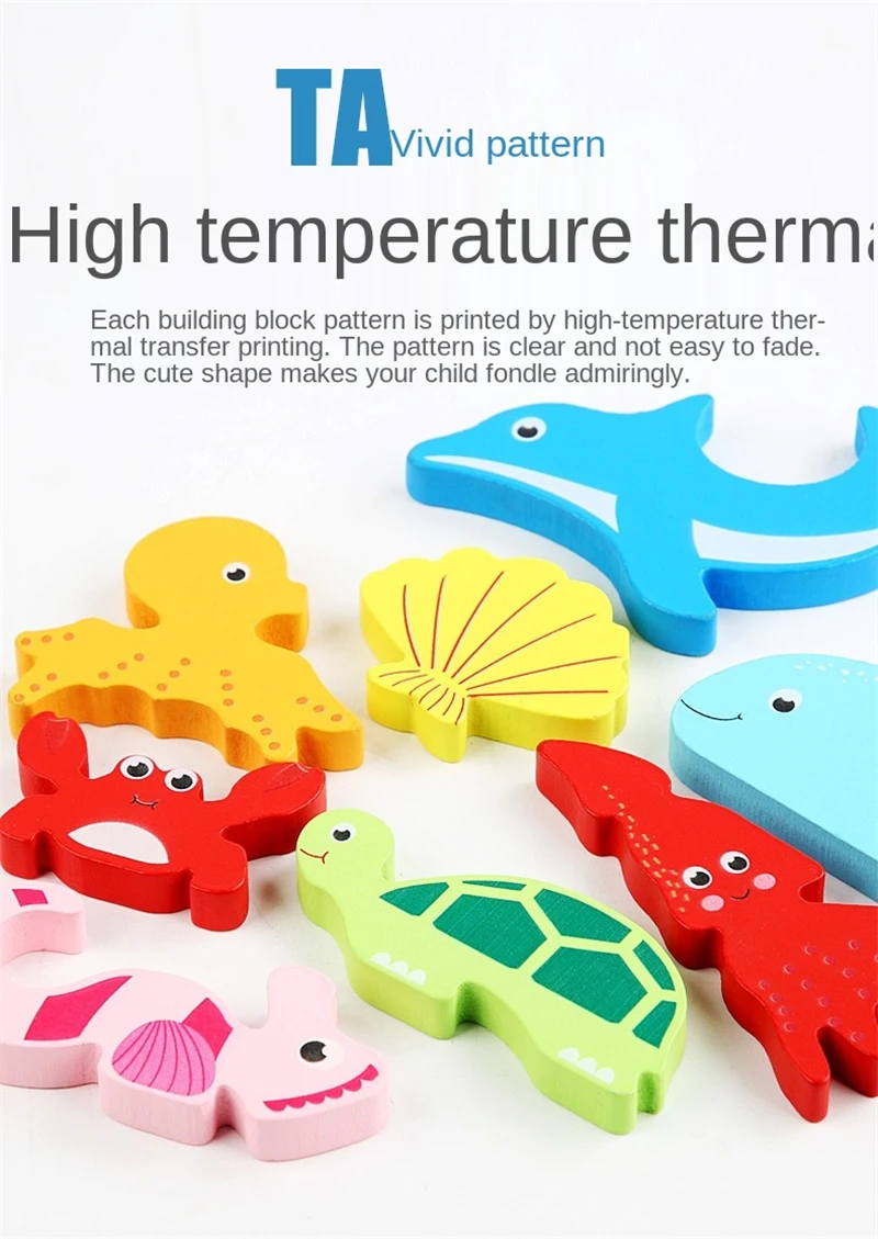 Блок мультяшных животных трехмерная головоломка детская деревянная ...
