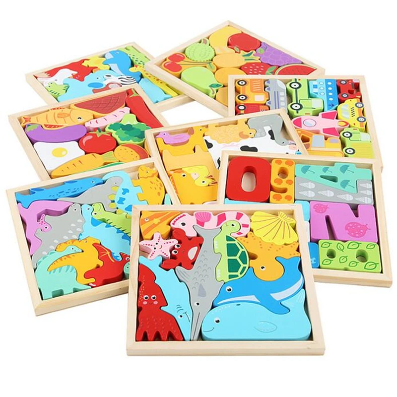 3D головоломки с мультяшными животными, деревянные игрушки для детей, детская доска для рук, фрукты, овощи, транспортное средство, деревянные головоломки, детская математическая игрушка