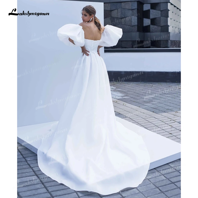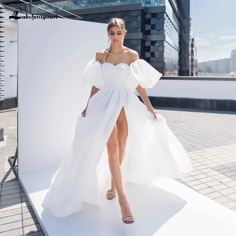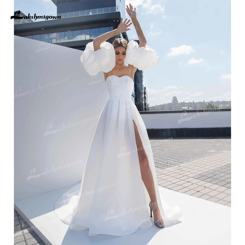 Современные свадебные платья трапециевидной формы с пышными рукавами и высоким разрезом сбоку сердечком свадебные платья 2022 атласные свадебные платья со шнуровкой до пола