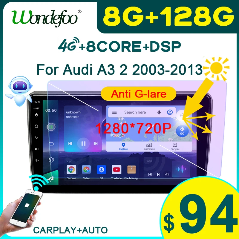 автомагнитола 2дин андройд 10 с экраном магнитола для Audi A3 2003-...
