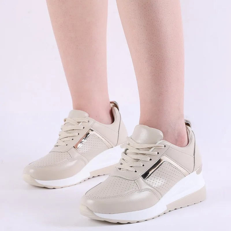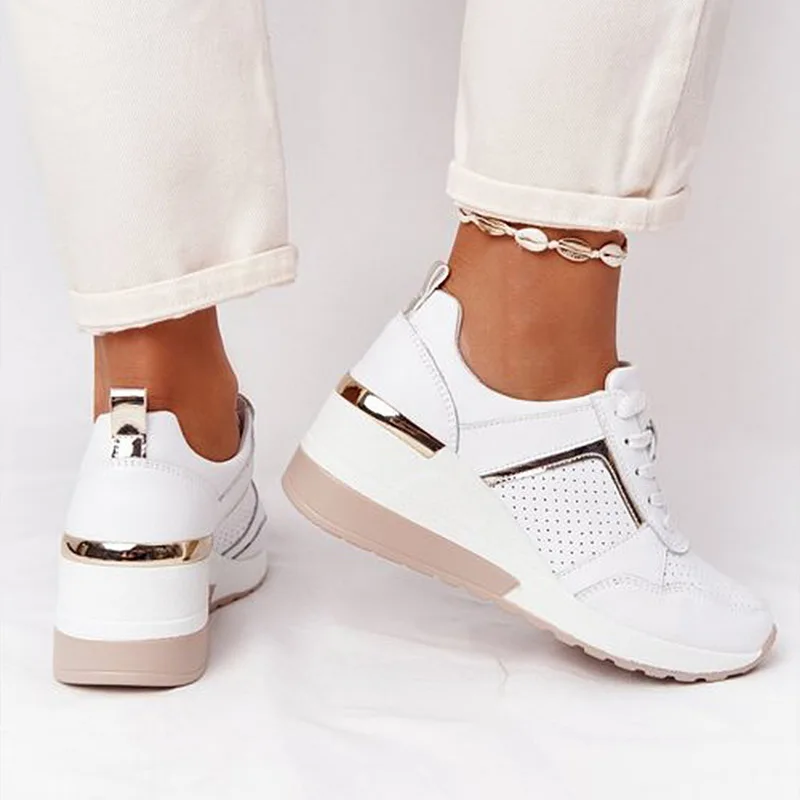 Кроссовки на танкетке женские, на шнуровке, Спортивная повседневная обувь, на вулканизированной подошве, дышащие