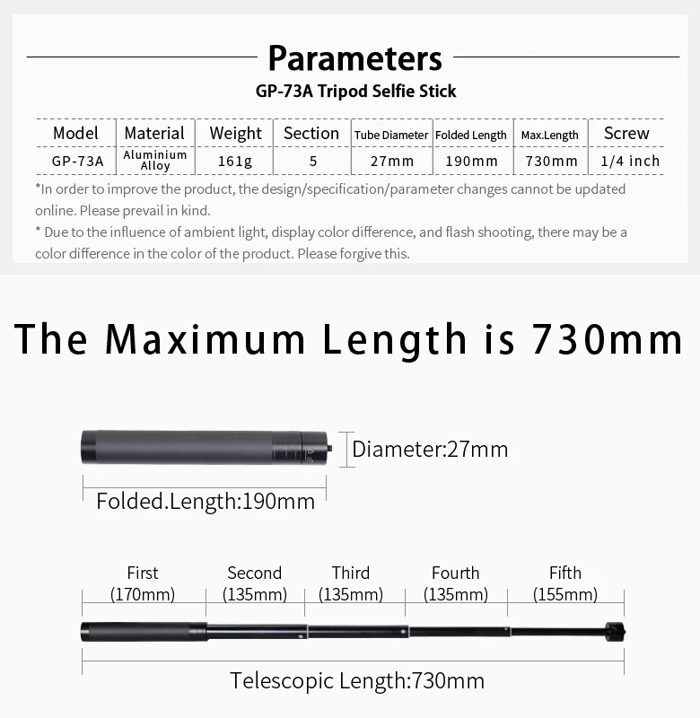 Ручной регулируемый удлинитель XILETU GP73A, выдвижная палка, телескопический складной для стабилизатора Gimbal