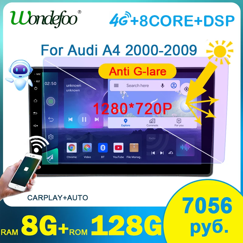 Автомобильный мультимедийный проигрыватель, 8 ядер, 8 + 128 ГГц, 2 ...