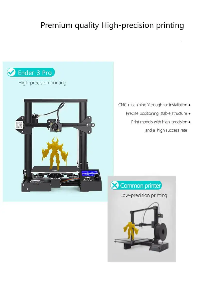 Ender 3 Pro обладает той же выдающейся производительностью, что и Ender 3, модернизированные компоненты делают этот 3D-принтер более стабильным, прочным и простым в эксплуатации.