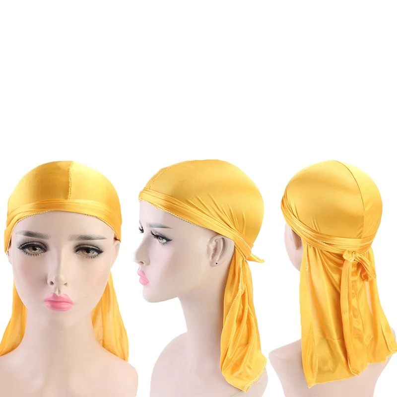 Головной убор унисекс Durag, длинный Шелковый Атласный дышащий тюрбан, шляпы Парики шелковистый Кепка, Chemo пиратский головной убор