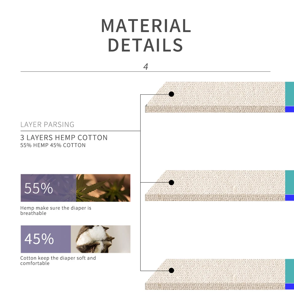 HappyFlute Конопляный хлопковый подгузник моющиеся вставки дышащий 3 слоя Конопляный хлопок использовать с детской тканью подгузник