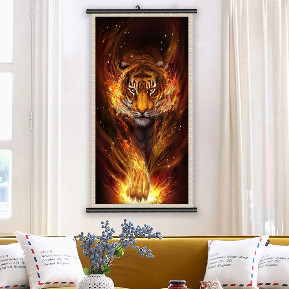 Алмазная 5D картина сделай сам, мозаика с изображением тигра, животных, пламени, полная Алмазная вышивка с рамкой, Набор для вышивки крестиком, украшение для дома