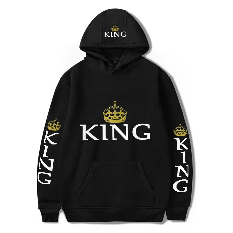 2022 женские и мужские толстовки с капюшоном, пуловеры, спортивные костюмы, свитшот с принтом King Queen, толстовки для влюбленных, толстовки с капюшоном для пар