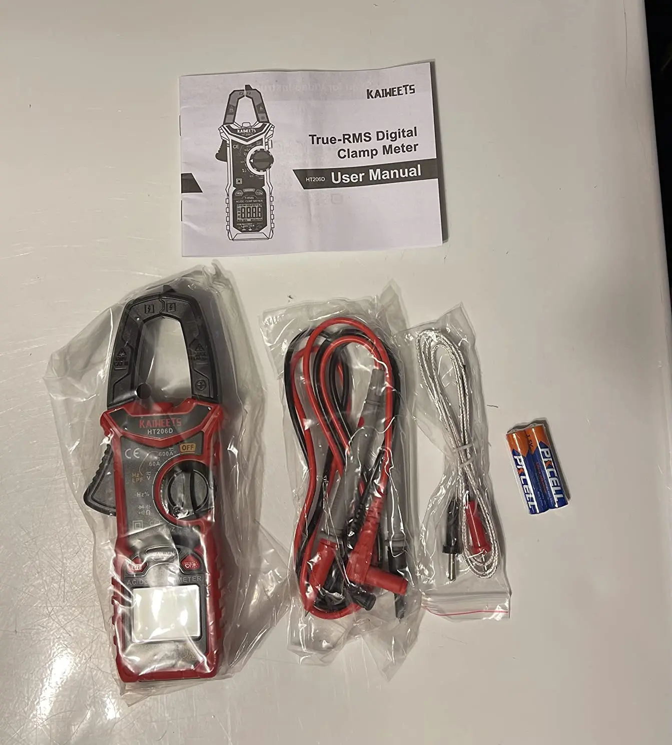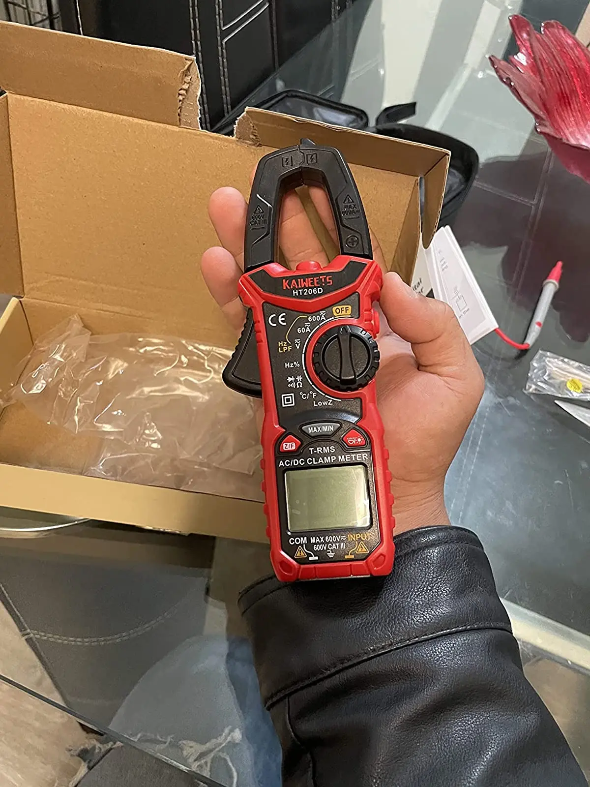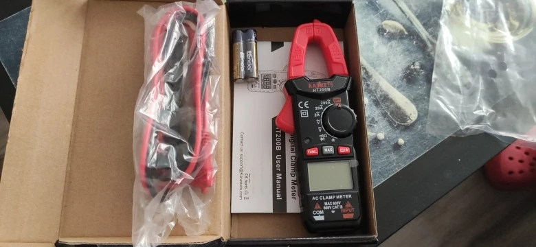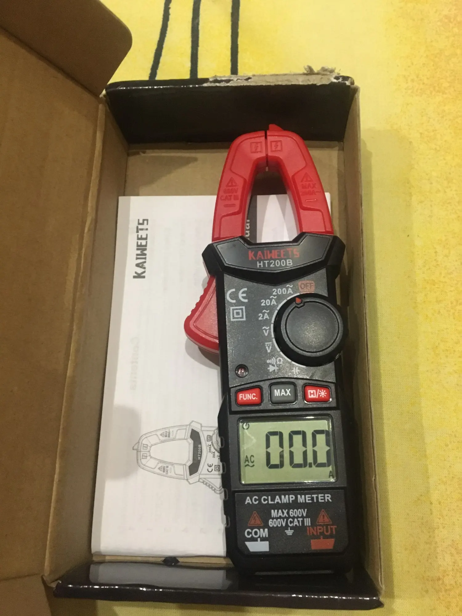 Прибор для измерения хомута KAIWEETS HT206D имеет удивительно прочный вид. Он довольно тяжелый и делает широкий спектр измерений. Это Автозапуск, который мне нравится, потому что мне не нужно устанавливать диапазон Ампер перед использованием. Я использовал его для проверки тока, проходящего через кабель, и он работает так, как ожидалось. Буквы на экране ясны, и они хорошо подсвечиваются. Он поставляется с 2 батареями AAA, но я ставлю свои собственные аккумуляторы, потому что я предпочитаю, чтобы они были сделаны. Картонная коробка, в которой она была, прочная, поэтому я буду держать ее в этом! Он прост в использовании, но при необходимости есть инструкции. Я бы порекомендовал это любому любителю DIY-er для проверки состояния автомобильного аккумулятора и т. Д.