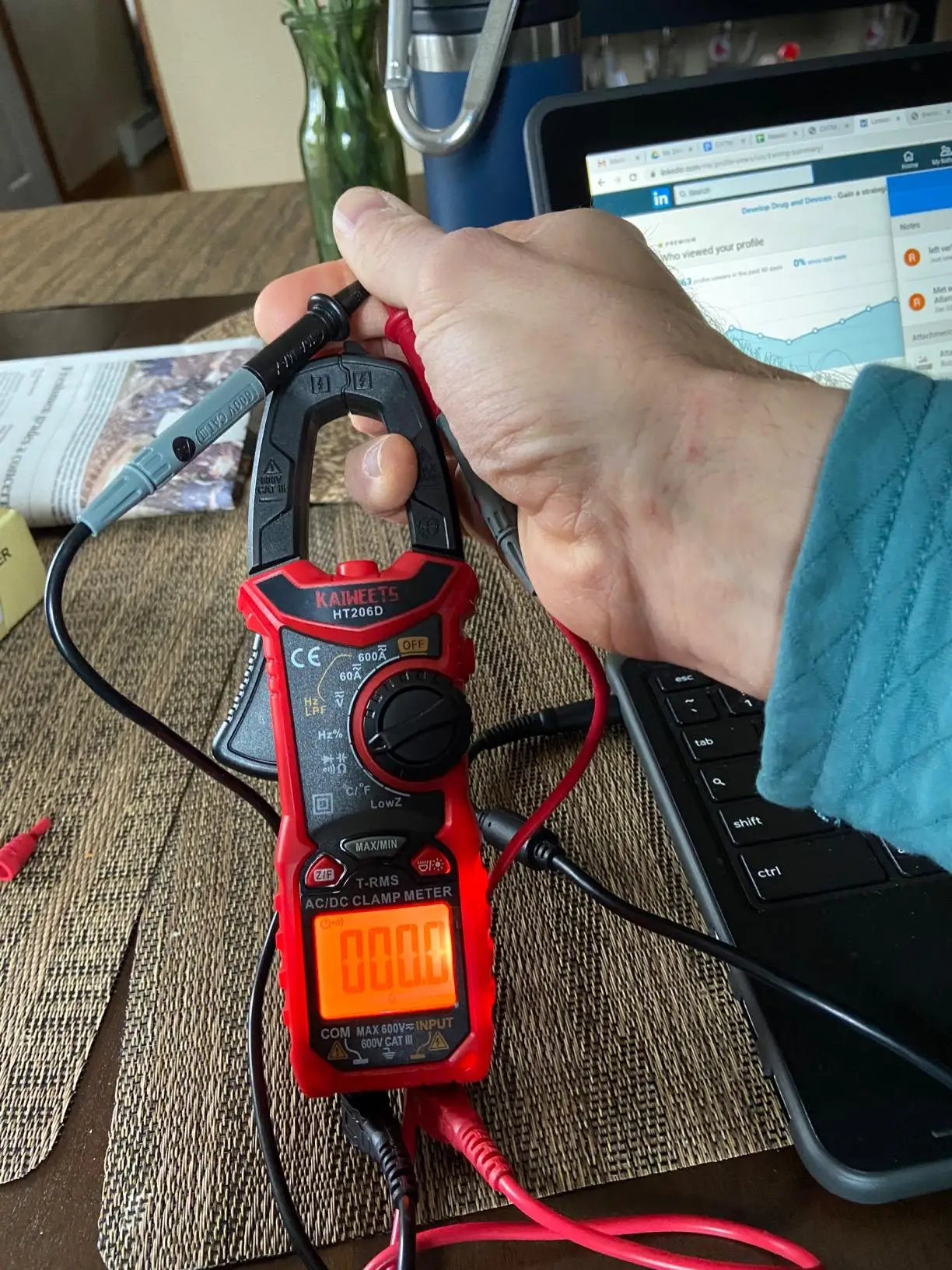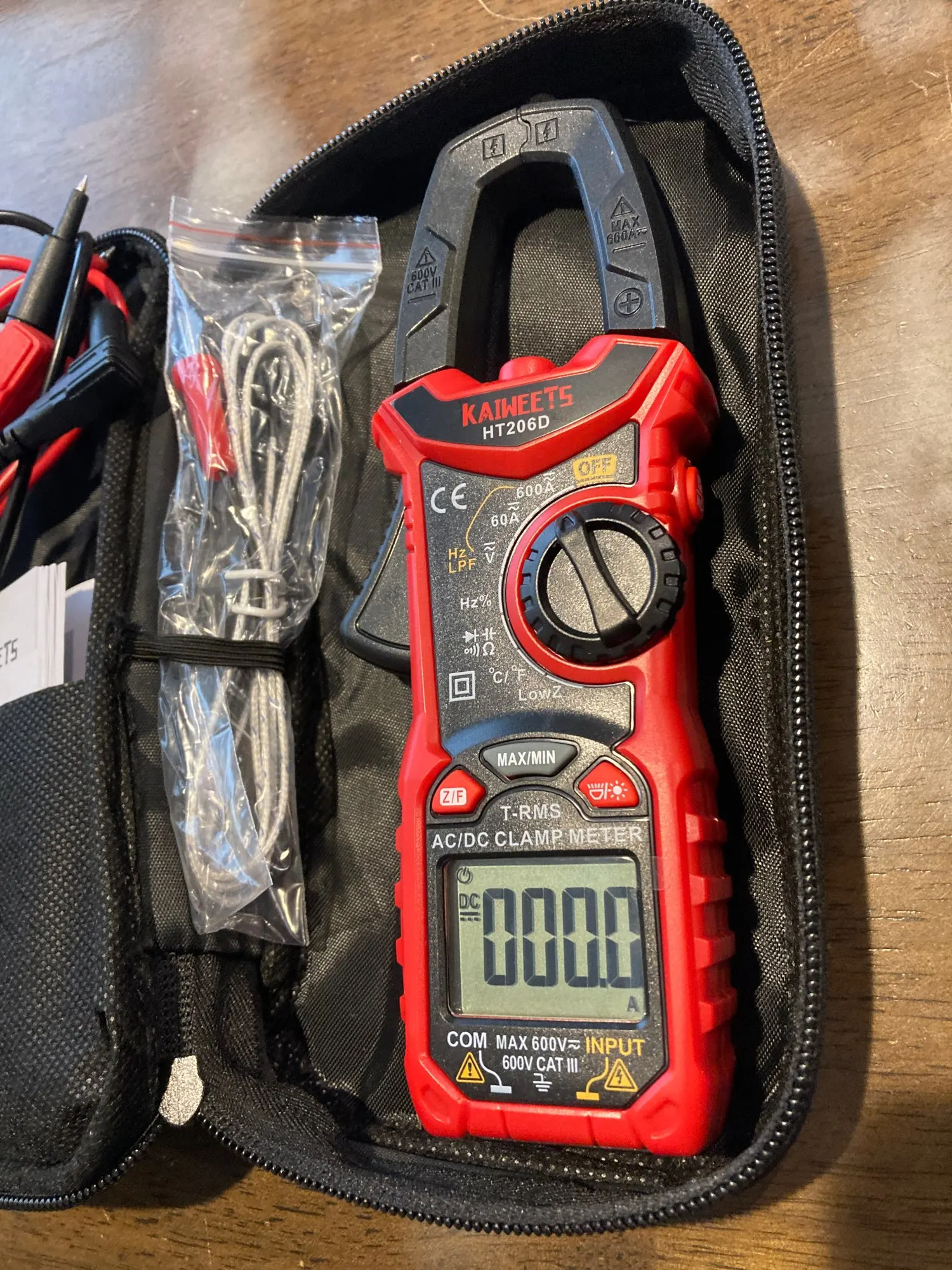 Никогда не думал, что у меня будет Зажим постоянного тока. Раньше они стоили сотни. Это отличный инструмент для меня, так как я использую множество систем зарядки для дома. Так приятно не разделять кабели, чтобы положить встроенный метр.