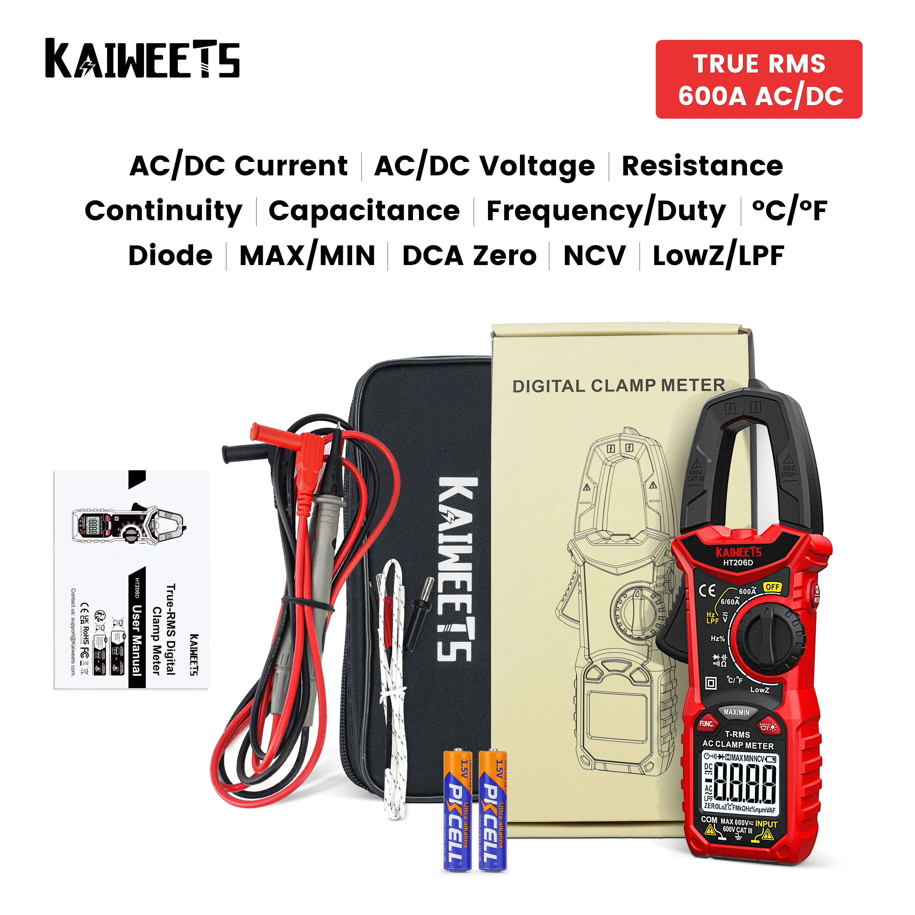 Цифровой мультиметр KAIWEETS, тестер с функцией True RMS, высокая точность, емкость, Бесконтактный индикатор напряжения, Ом, Гц, ACDC