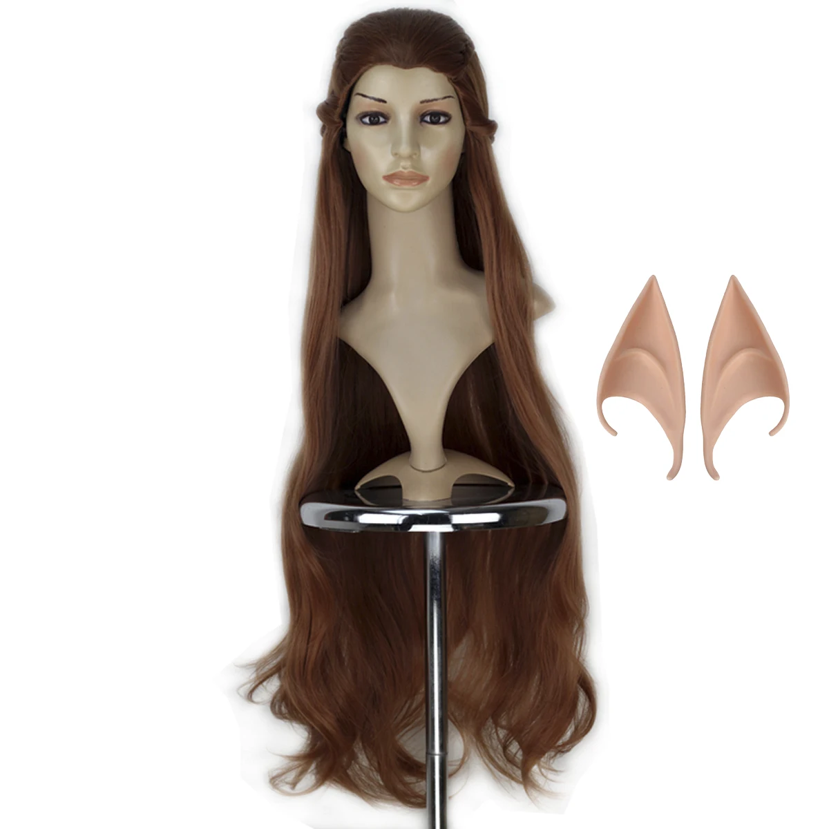 Парик для косплея тауриэль, 100 см, длинные вьющиеся волосы, парики для вечеринки на Хэллоуин, ролевые парики с ушками эльфа + бесплатная шапочка для парика