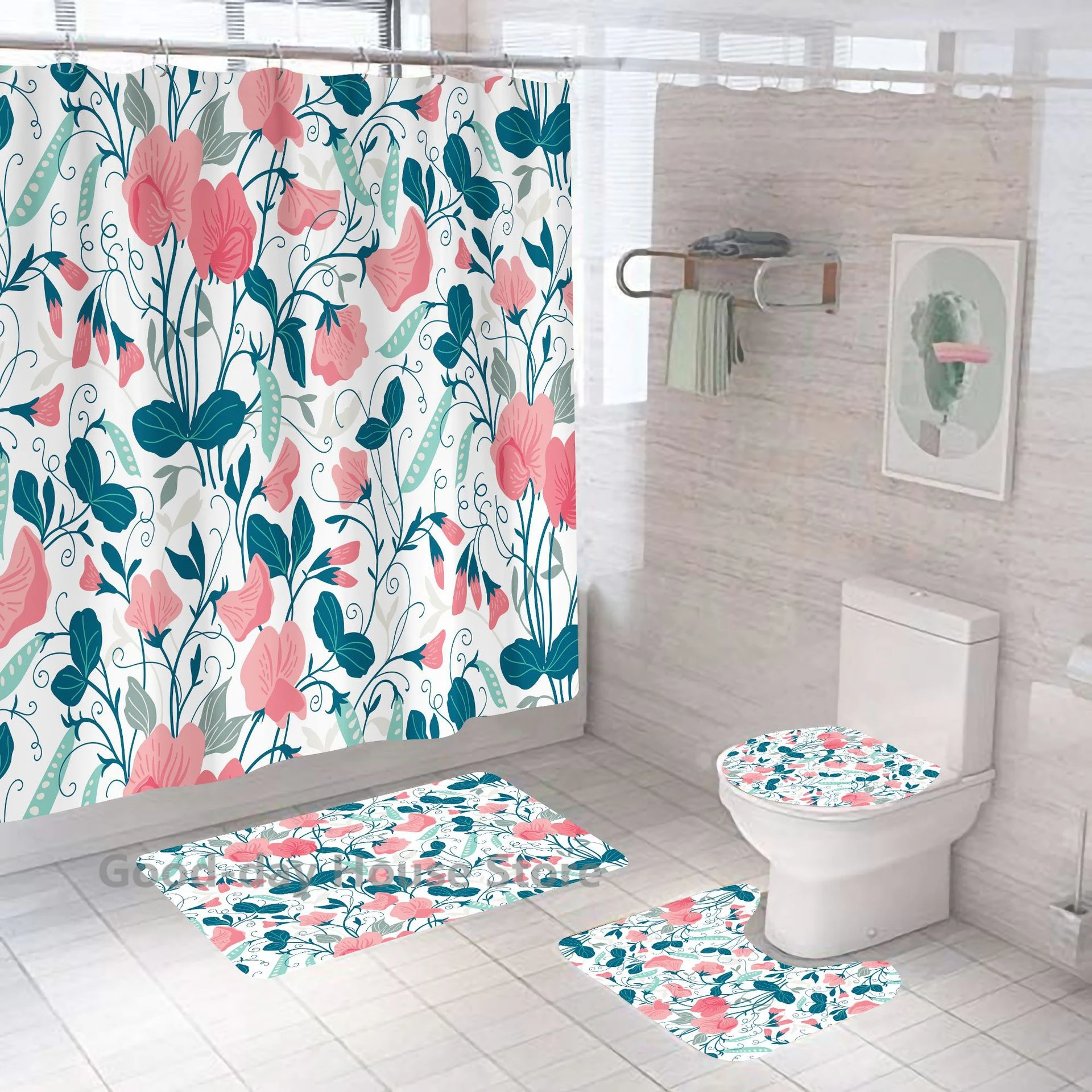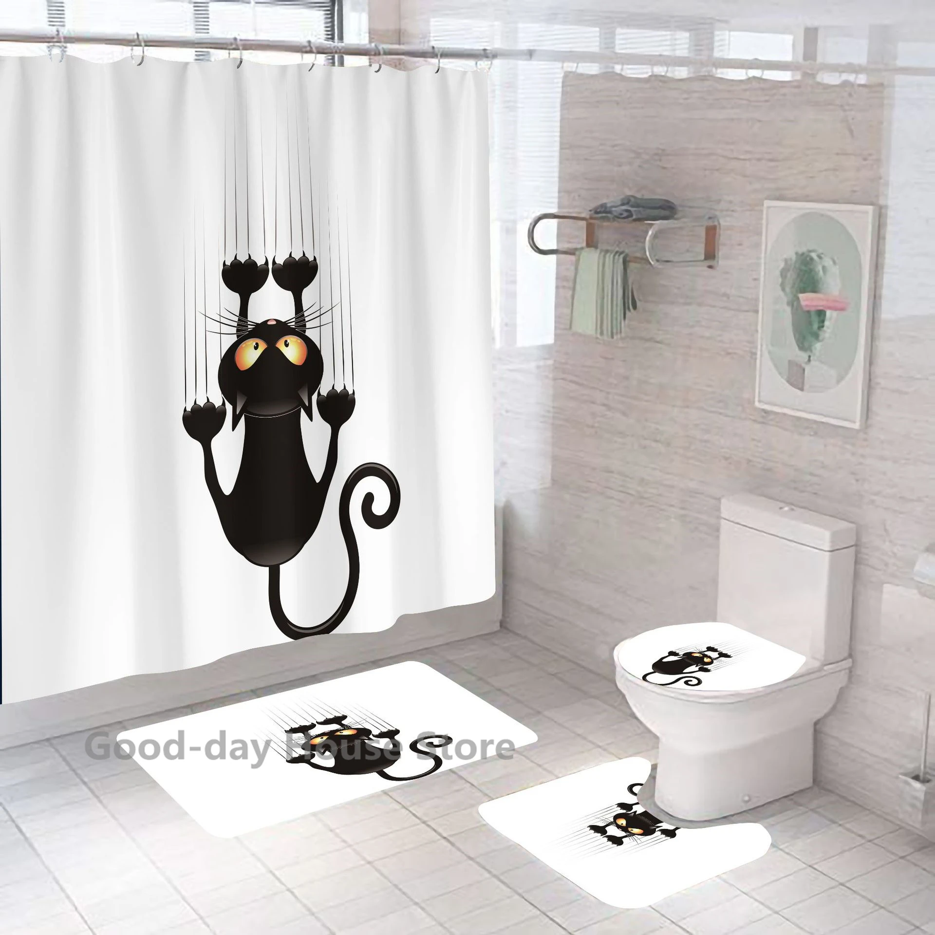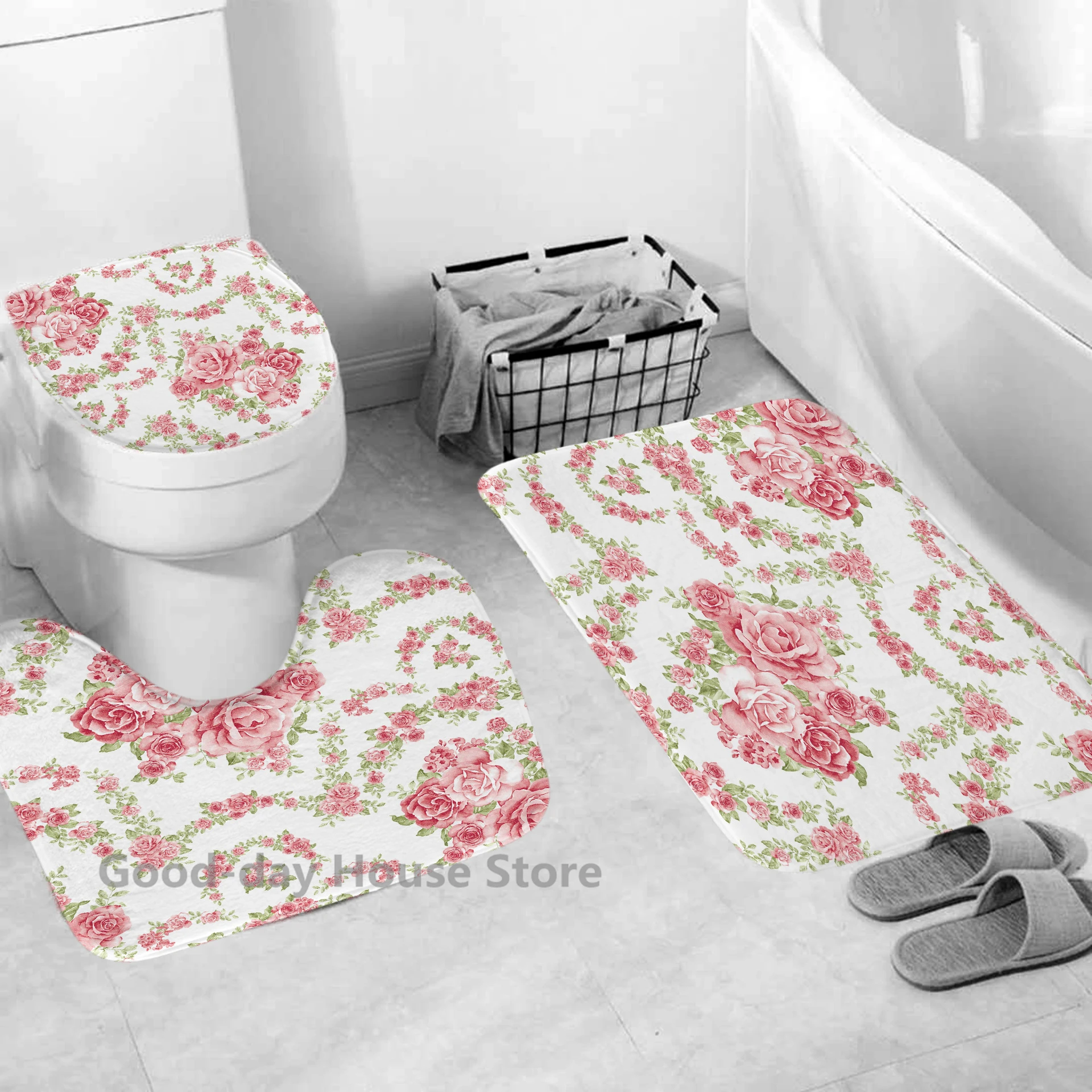 Розовые розы, цветы, занавеска для душа, набор для ванной, белый, черный, кот, коврики для ванной, крышка для унитаза, роскошный Противоскользящий ковер Mag, домашний декор