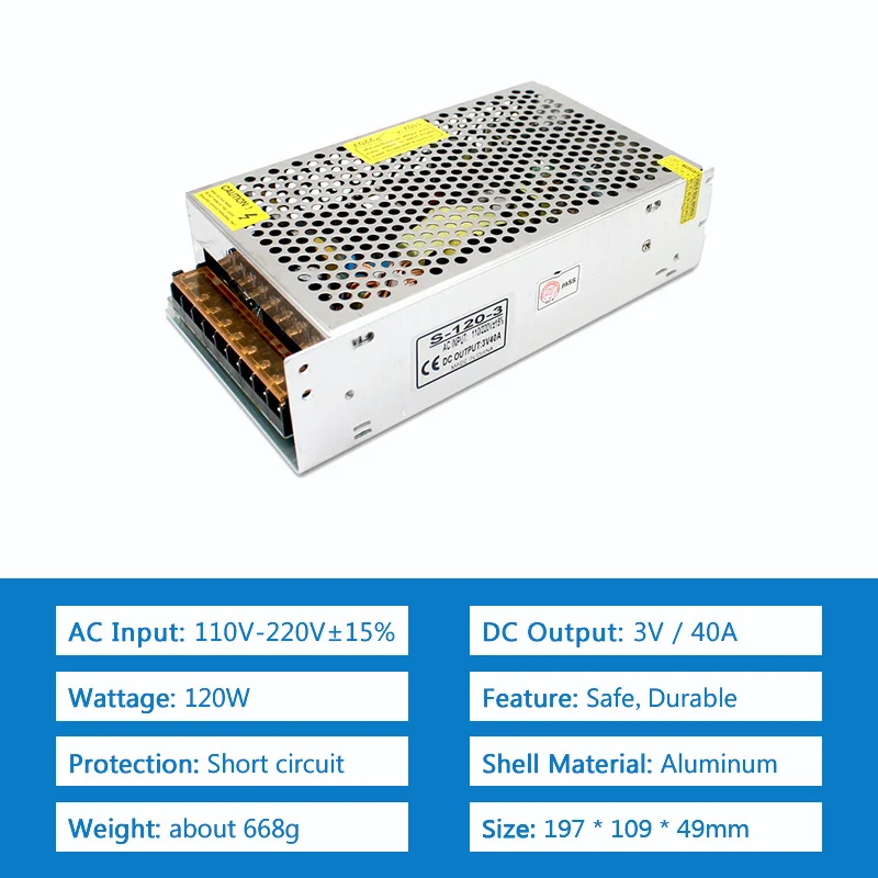 120 Вт импульсный источник питания AC DC 110-220 В до 3 в 40A адаптер трансформатор освещения Светодиодный драйвер встроенный вентилятор охлаждения