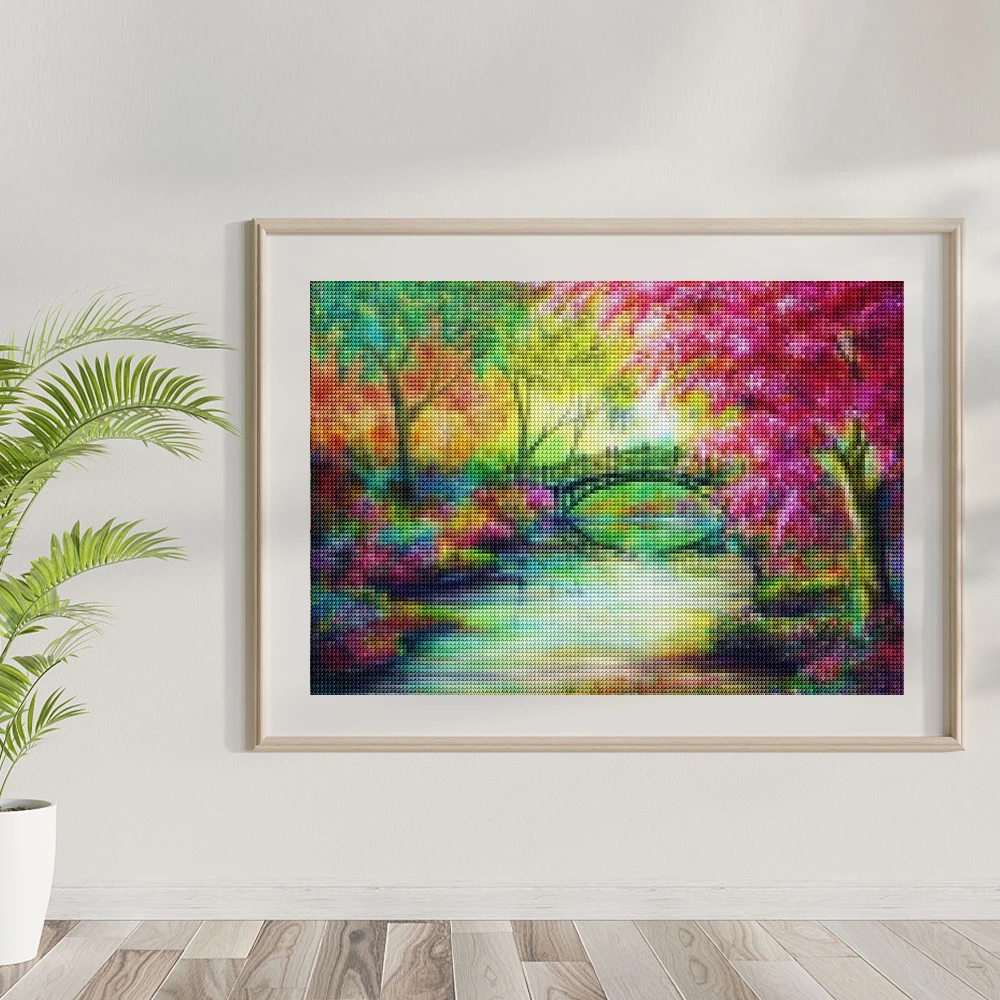 Алмазная 5D картина сделай сам, деревья, лесной пейзаж, алмазная вышивка, картина маслом, пейзаж стразы, мозаика, домашний декор