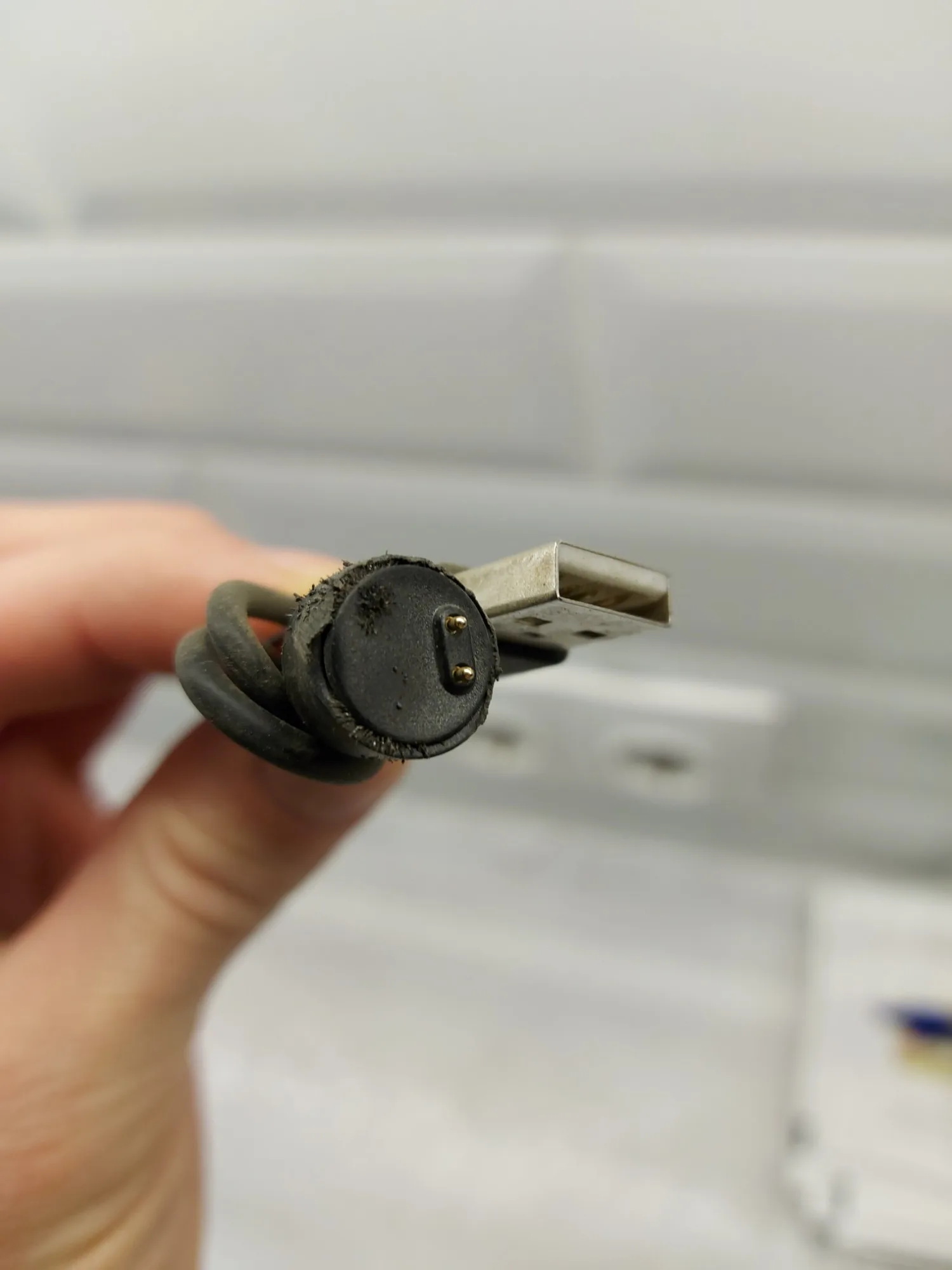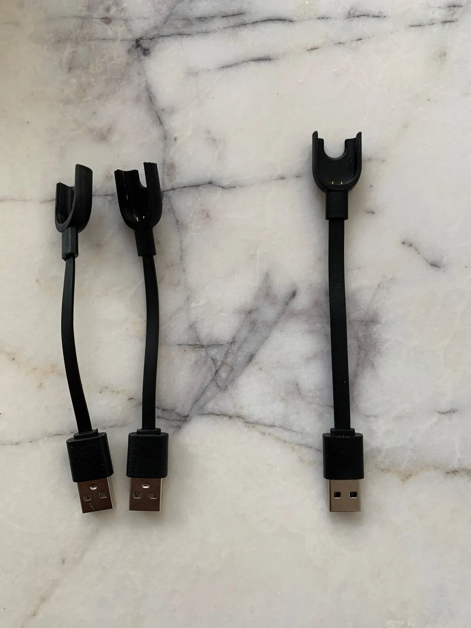 На фото оригінал справа і даний товар (дві шт зліва) кабель трішки тонший і менший по довжині за оригінал. Але все працює і заряджає. Користуюсь вже 2 тижні - політ нормальний. Мі бенд вставляється щільно без зазорів контакт нормальний. Відправили товар швидко. Продавця рекомендую