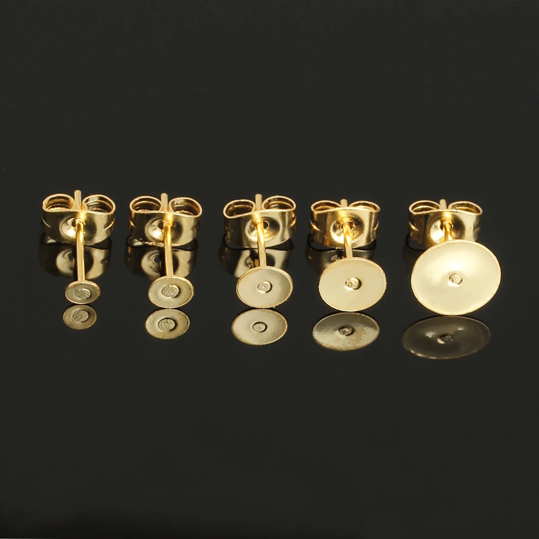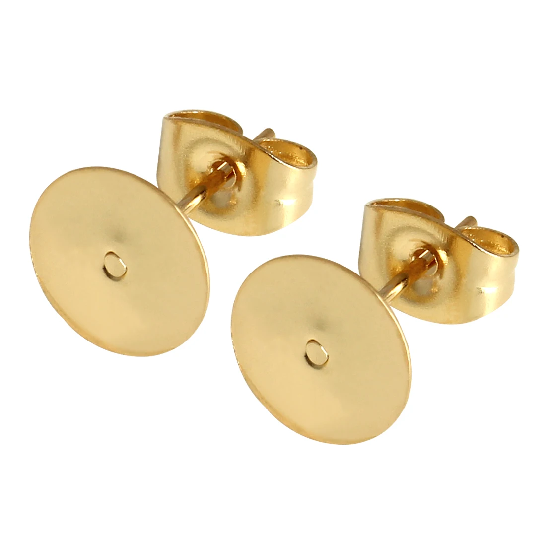 Основа для сережек-гвоздиков из нержавеющей стали с настоящим позолоченным покрытием