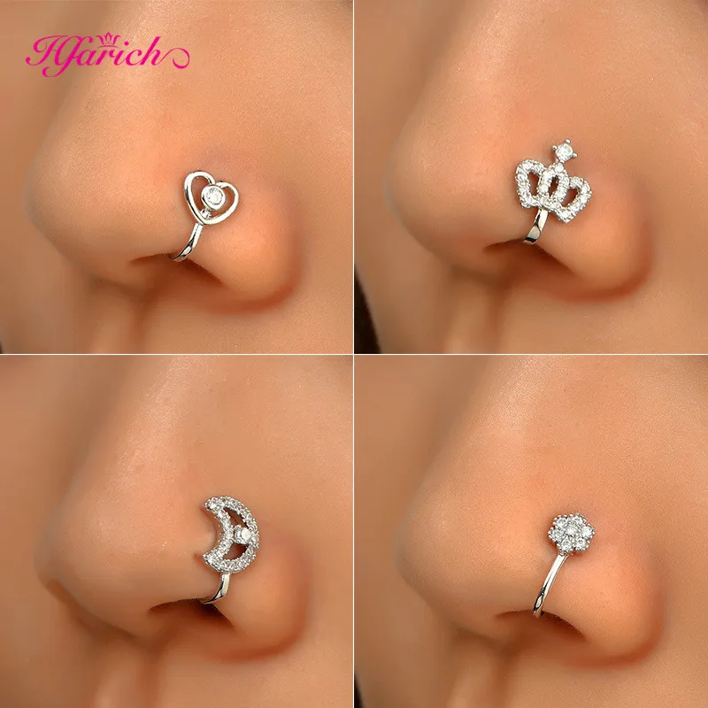 Модные циркониевые Поддельные Пирсинг нос кольцо Сердце Звезда Коро...
