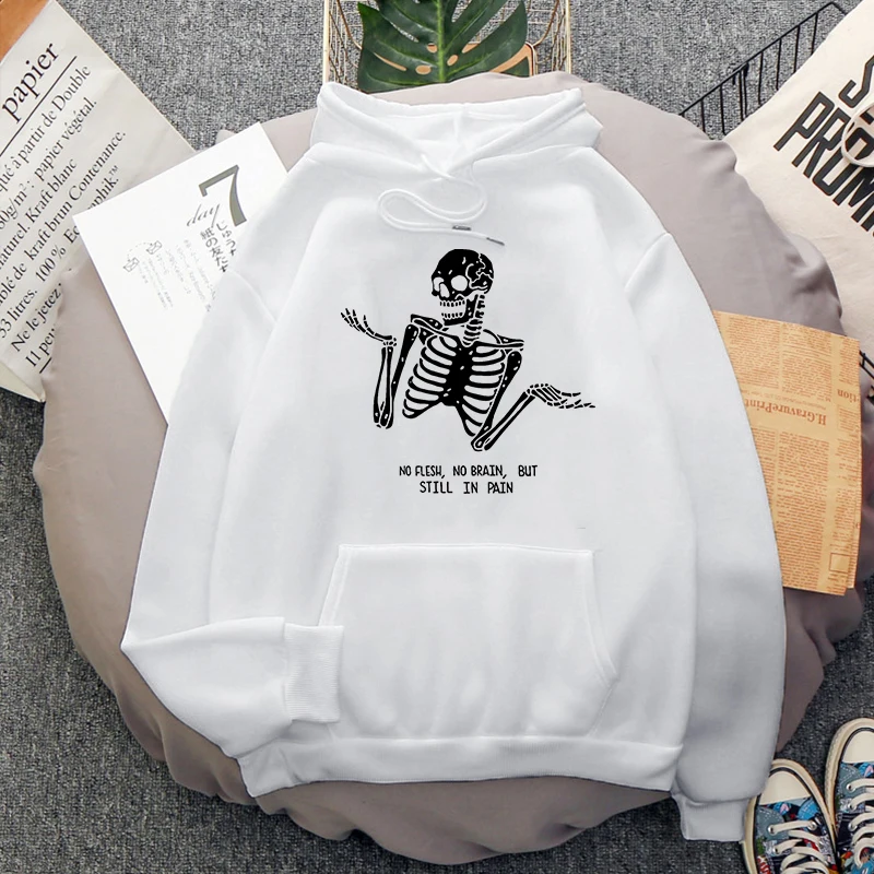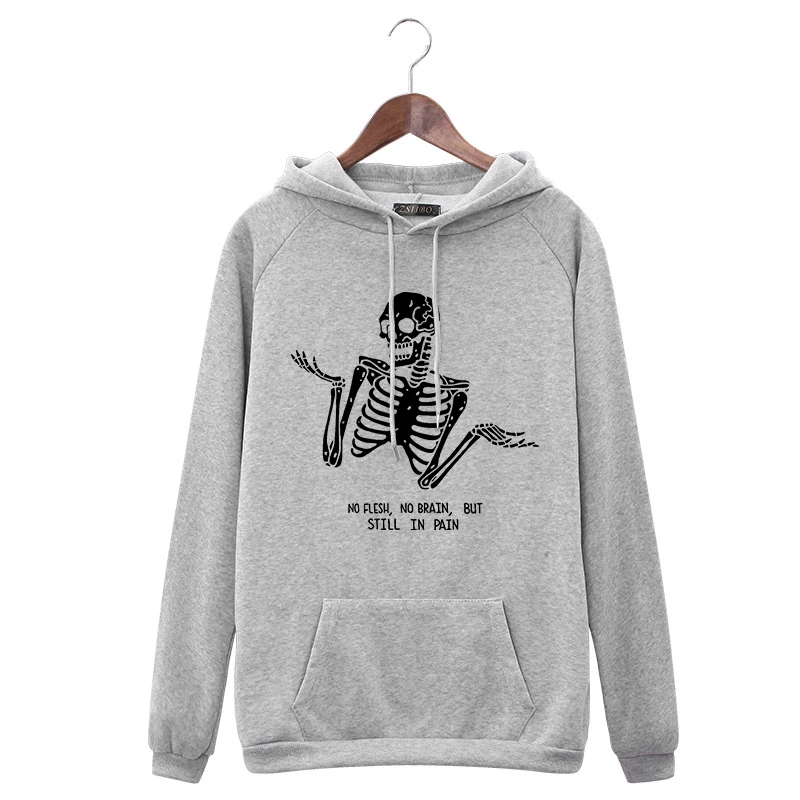 Свитшот с капюшоном в стиле Харадзюку, женская одежда в стиле ретро, с принтом скелета, в стиле темных панк, свитшоты с длинным рукавом, уличная одежда, Готическая Толстовка