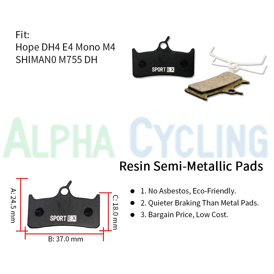 4 пары, велосипедные дисковые Тормозные колодки для HOPE DH4 E4 M4 и штангенциркуля Shimano M755 DH, Sport EX Class, из смолы