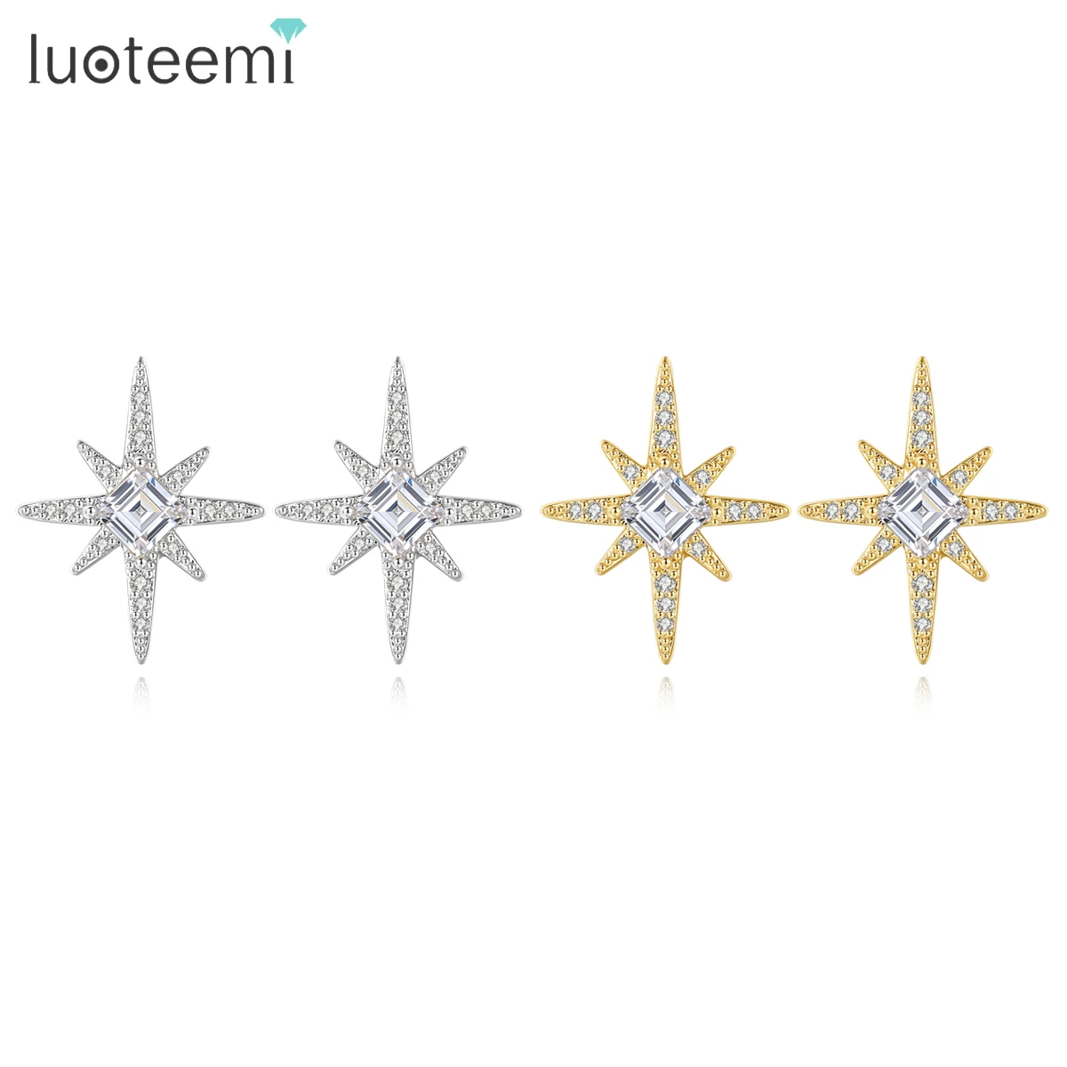 Женские серьги-гвоздики LUOTEEMI, золотистыеСеребристые серьги с блестящим кубическим цирконием, украшение для вечеринки, 2022 Dec, Новинка