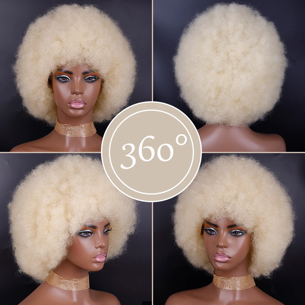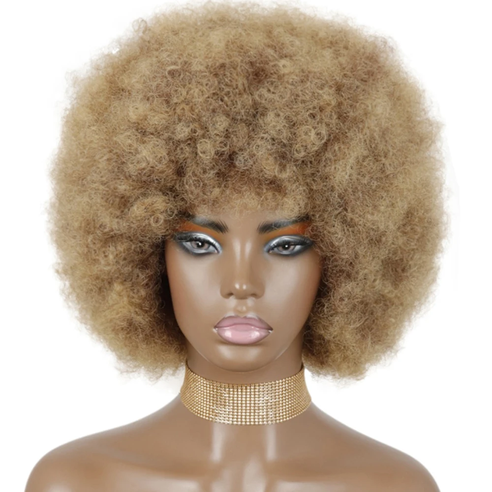 Синтетические короткие волосы афро кудрявые парики с челкой для чернокожих женщин африканские блонд безклеевые парики для косплея высокая температура
