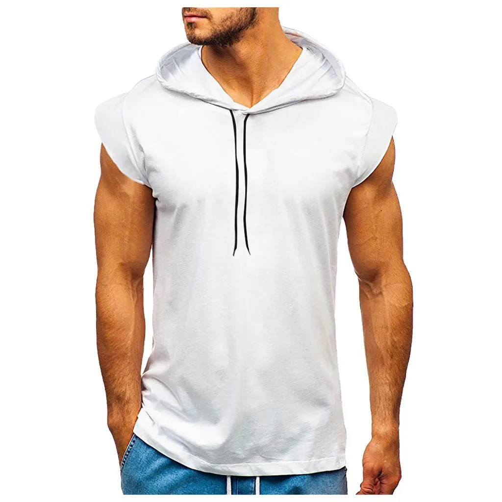 Футболка мужская с капюшоном, тренировочная Спортивная Облегающая майка без рукавов, уличная одежда в стиле хип-хоп для бодибилдинга и тренировок, эластичная