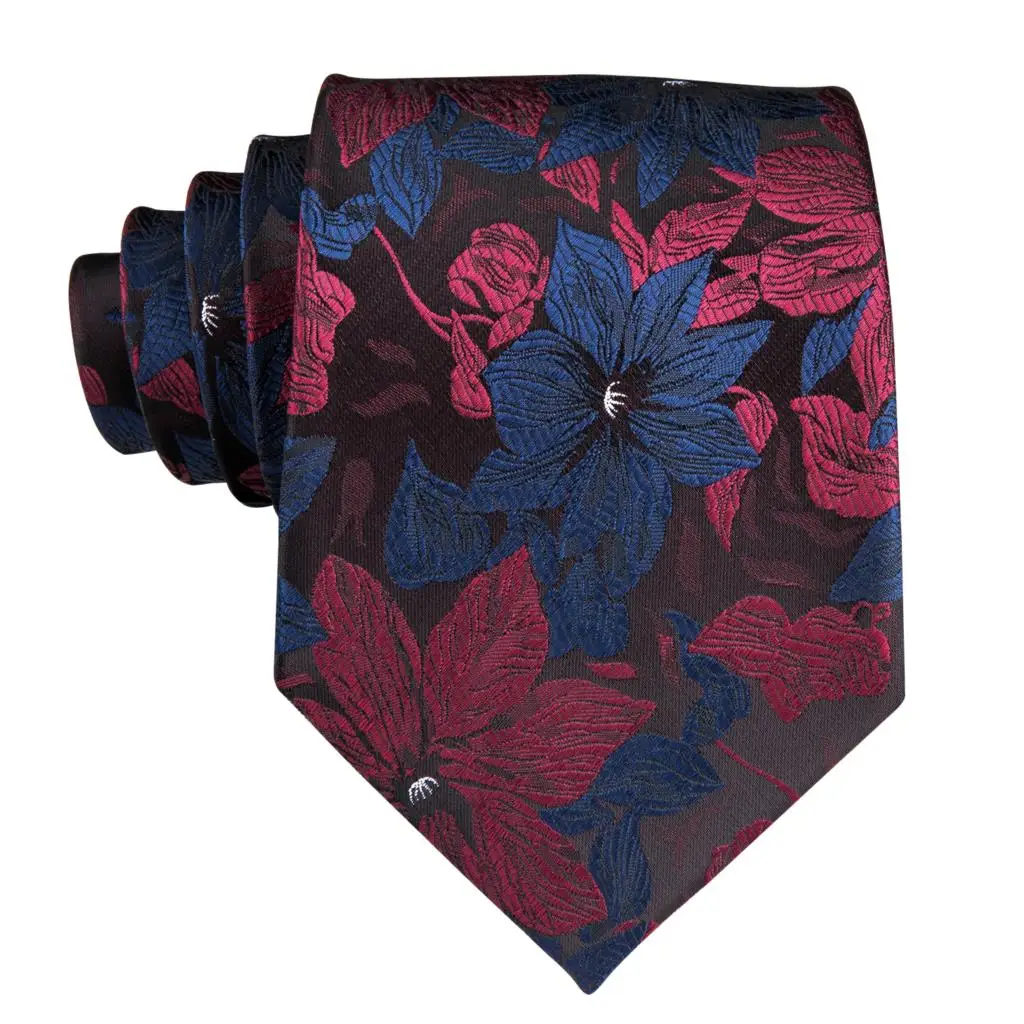 Темно-синий бордовый шелковый Свадебный галстук для мужчин Handky Cufflink подарок мужской галстук модный дизайнерский бизнес вечерние прямые поставки