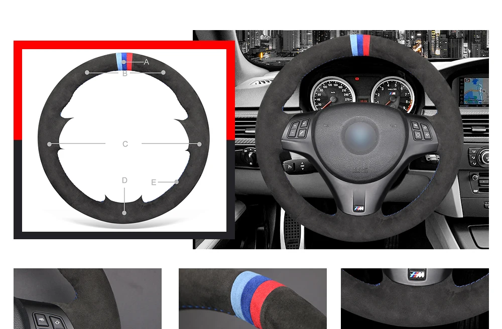 A: Красный МаркерB + C + D: черная Алькантара #9040E: Красная Нить