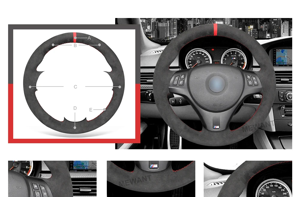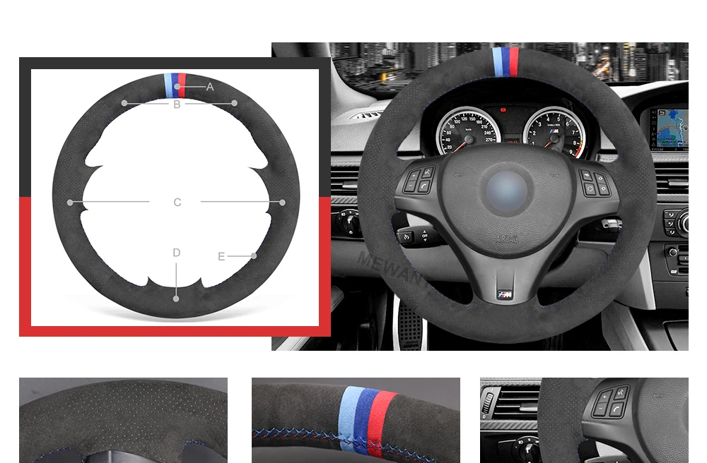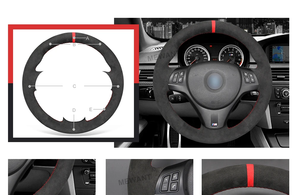 MEWANT черный чехол на руль Alcantara для BMW M Sport M3 E90 E91 E92 E93 E87 E81 E82 E88 X1 E84 2005-2007-2015