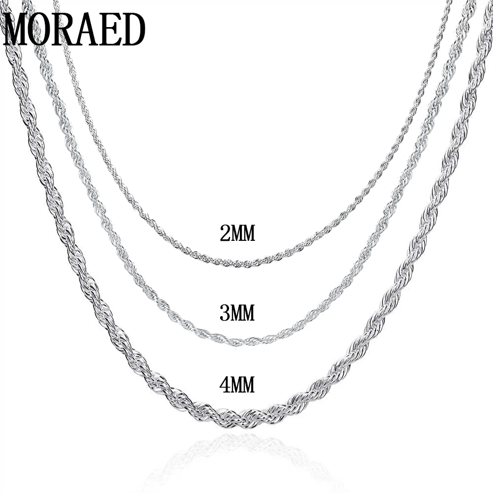 Женская твист-веревка из серебра 925 пробы, 2 мм3 мм4 мм, модные ювелирные украшения
