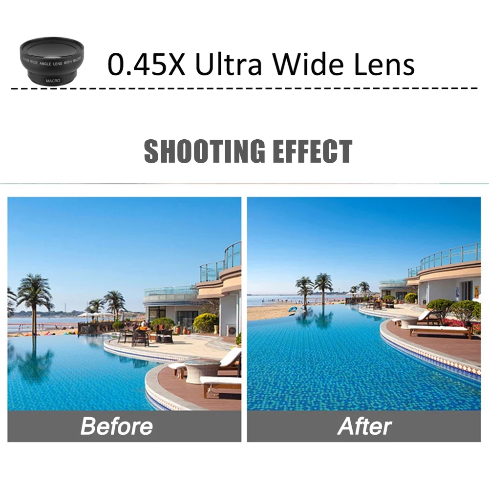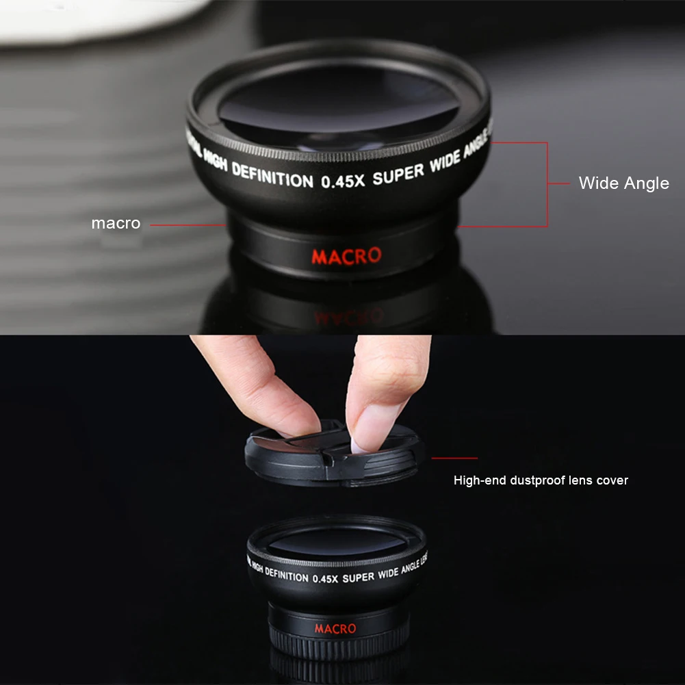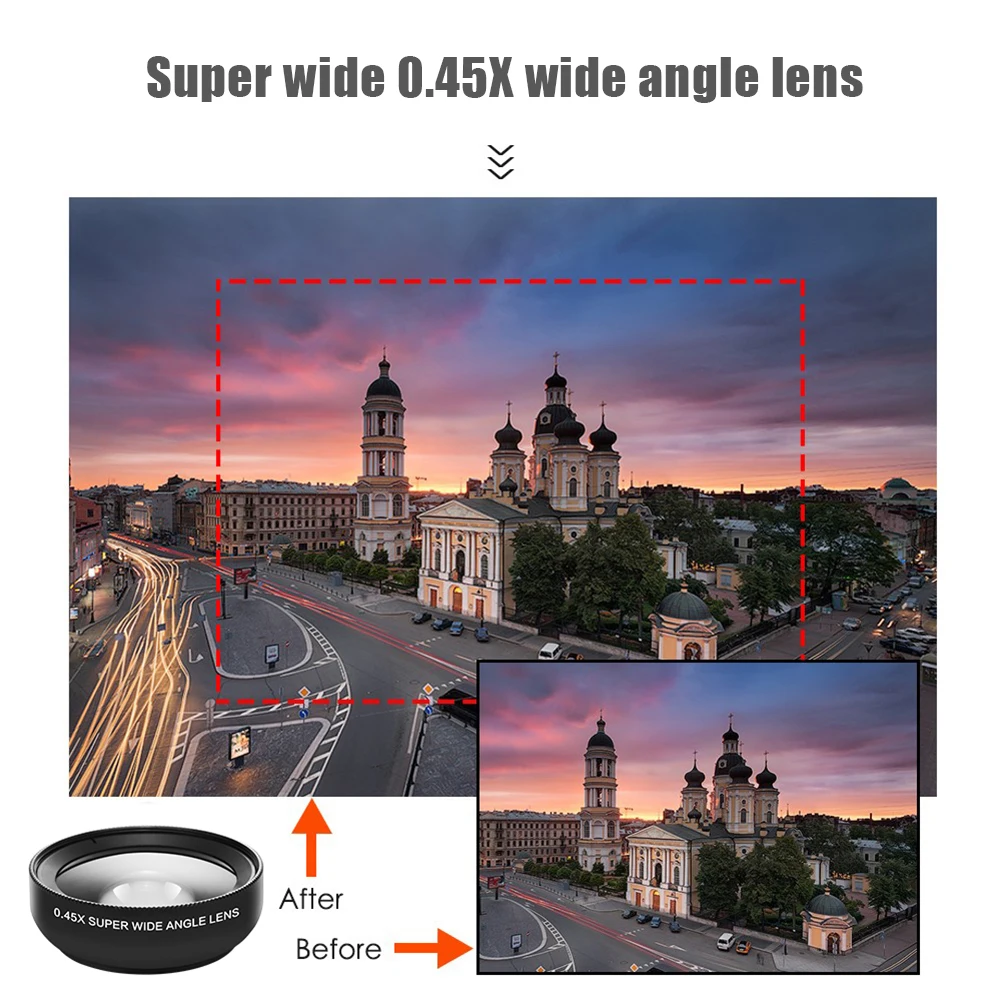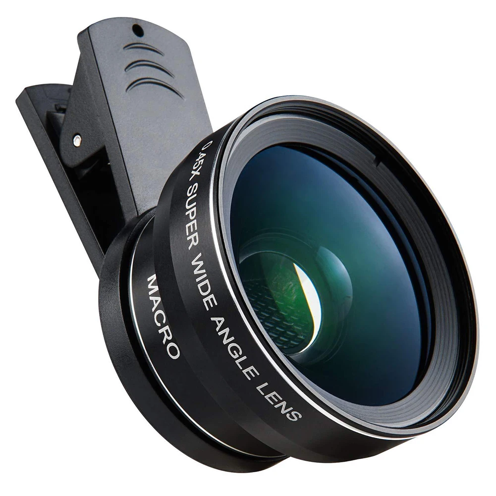 2 в 1, объектив для телефона 37 мм, 0,45x, 49 УФ, суперширокий угол + 12,5x супер макрообъектив, Универсальный объектив с зажимом HD для камеры iPhone, Android