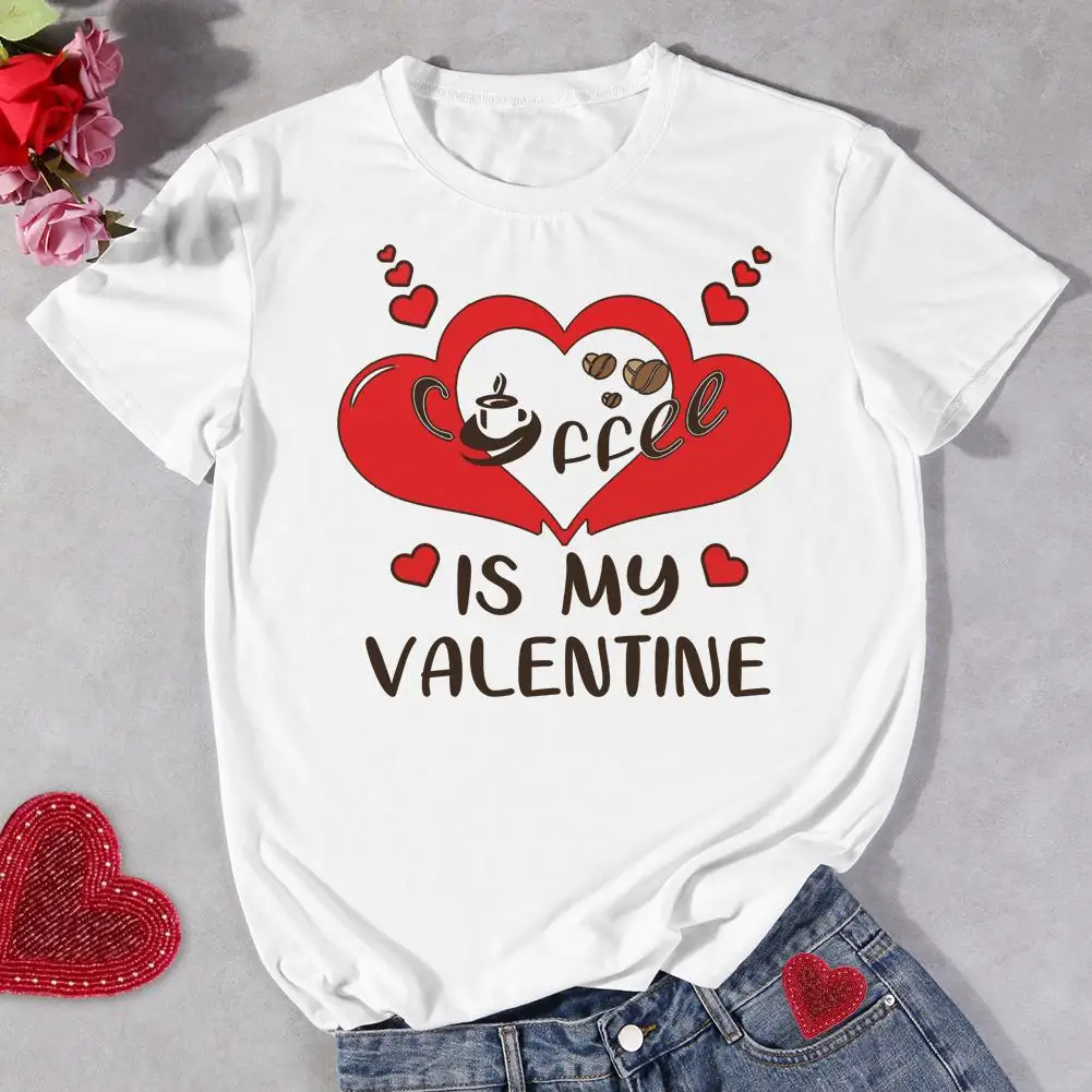 Футболка с принтом «любовь», «кофе-это мой день Святого Валентина», женская мода, круглый вырез, короткий рукав, женская одежда, летние футболки, повседневный Топ белого цвета