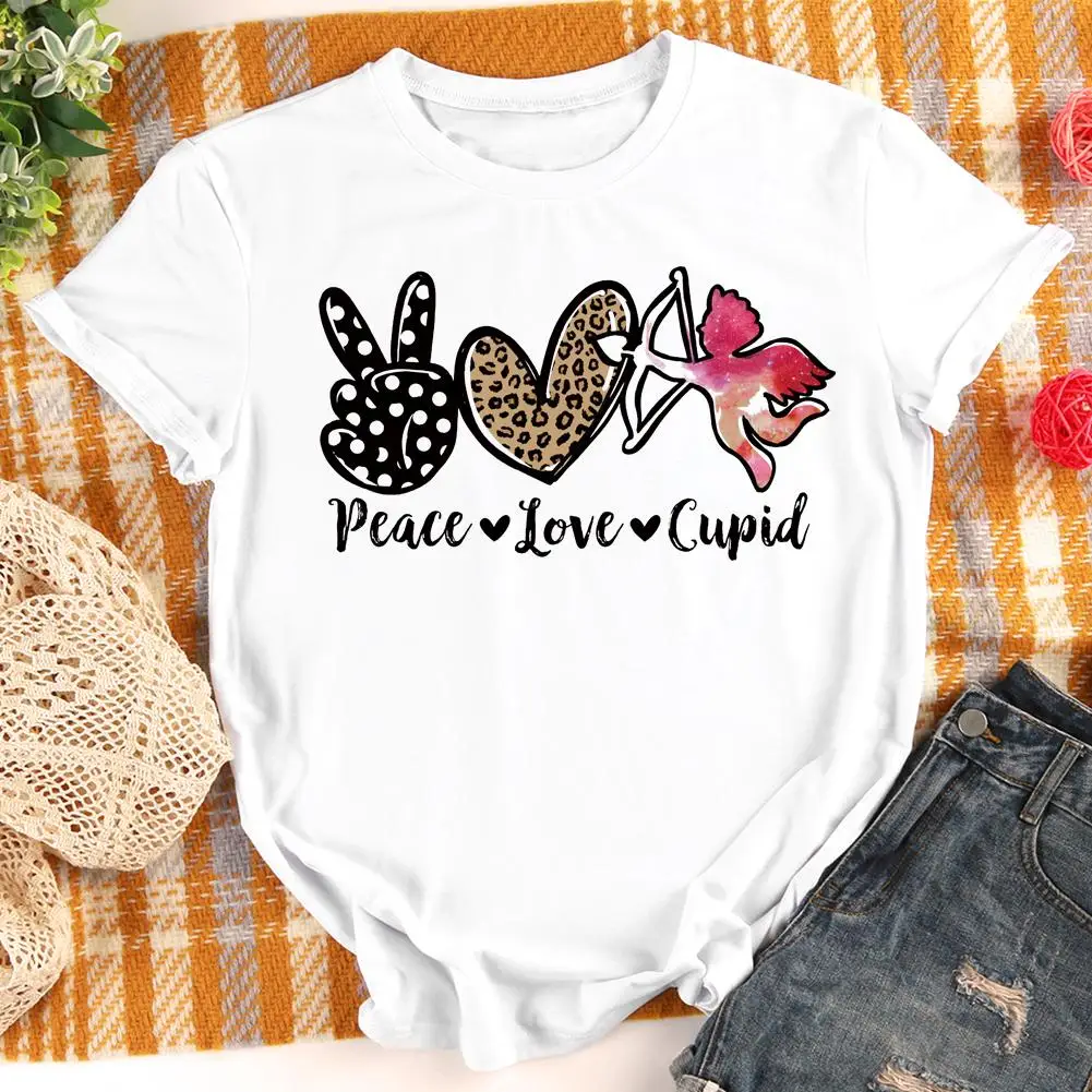 Женские футболки с принтом в виде сердечек, футболка на День святого Валентина кофейного цвета, летние повседневные футболки с коротким рукавом, женские топы