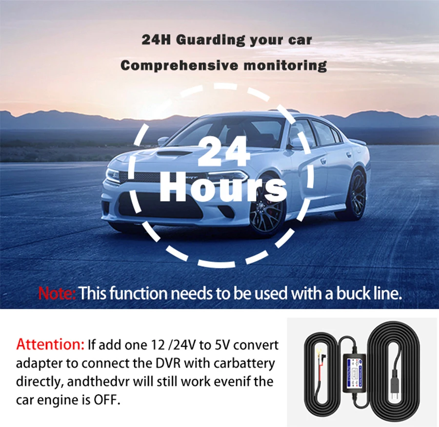 24-часовой мониторинг парковки, когда происходит столкновение во время парковки, система автоматически включит видео мониторинг, чтобы защитить ваш автомобиль 24 часа в сутки.