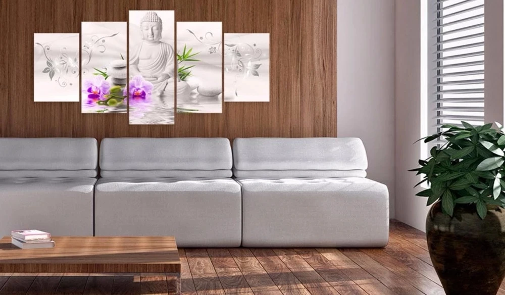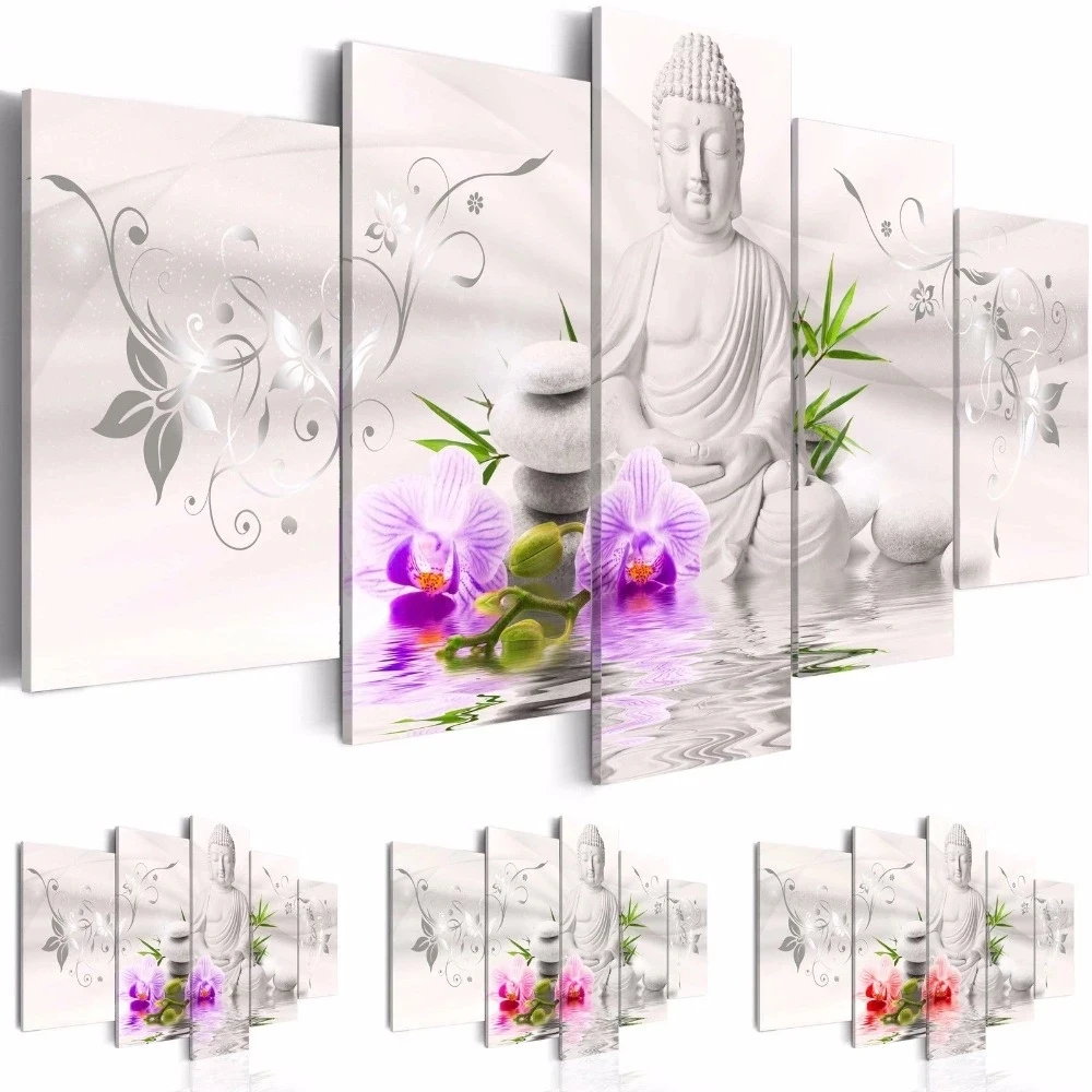 Модульная настенная статуя Будды White Rock, 5 шт., красочная фотография, бамбуковый лист, холст, живопись, домашний декор, без рамки