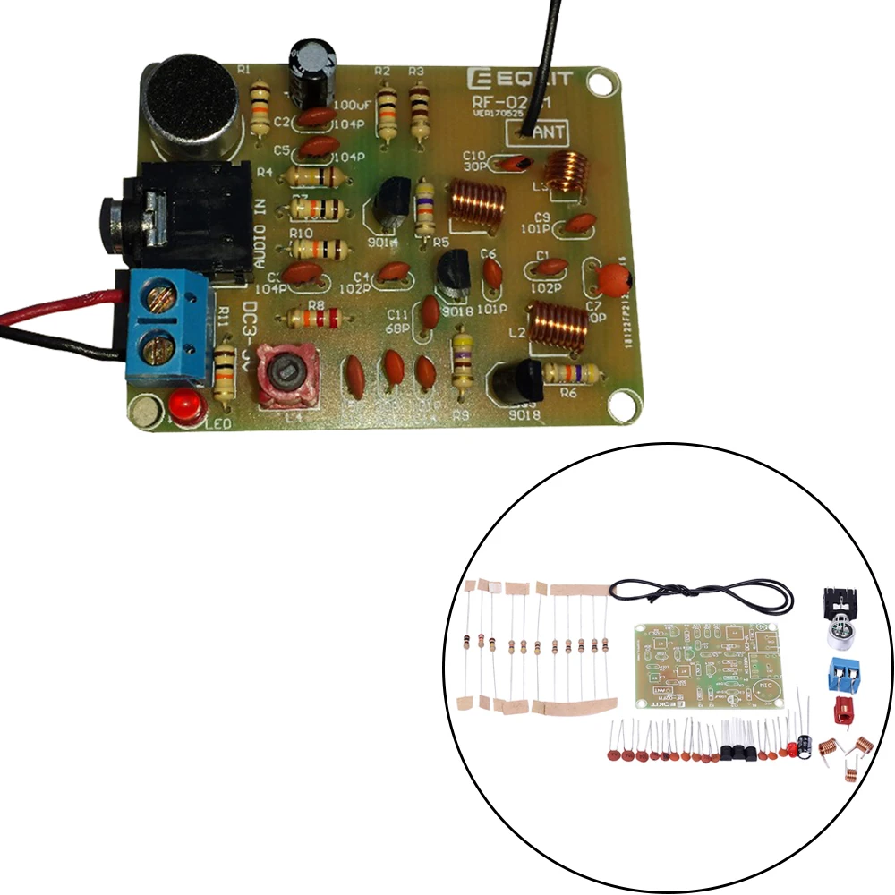 Введение:1. Размер платы: 50*30 мм2. Рабочий Напряжение: 1,5-9V3. Рабочий ток: 3,3-29mA4. Рабочая частота: 85-115 МГц5. Устройство приема: fm-радио/мобильный телефон с функцией fm-радио6. Аудио ответ: 20 Гц-15 кГц7. Мощность радиочастоты:-2dBM ~ 15dBm8. Радиочастотное Выходное сопротивление: 50 Ом9. Вторая гармоника:>=-40 дБ10. Расстояние передачи: 100-100 мПримечание:Согласно шелкографическому экрану PCB и списку компонентов, завершите установку