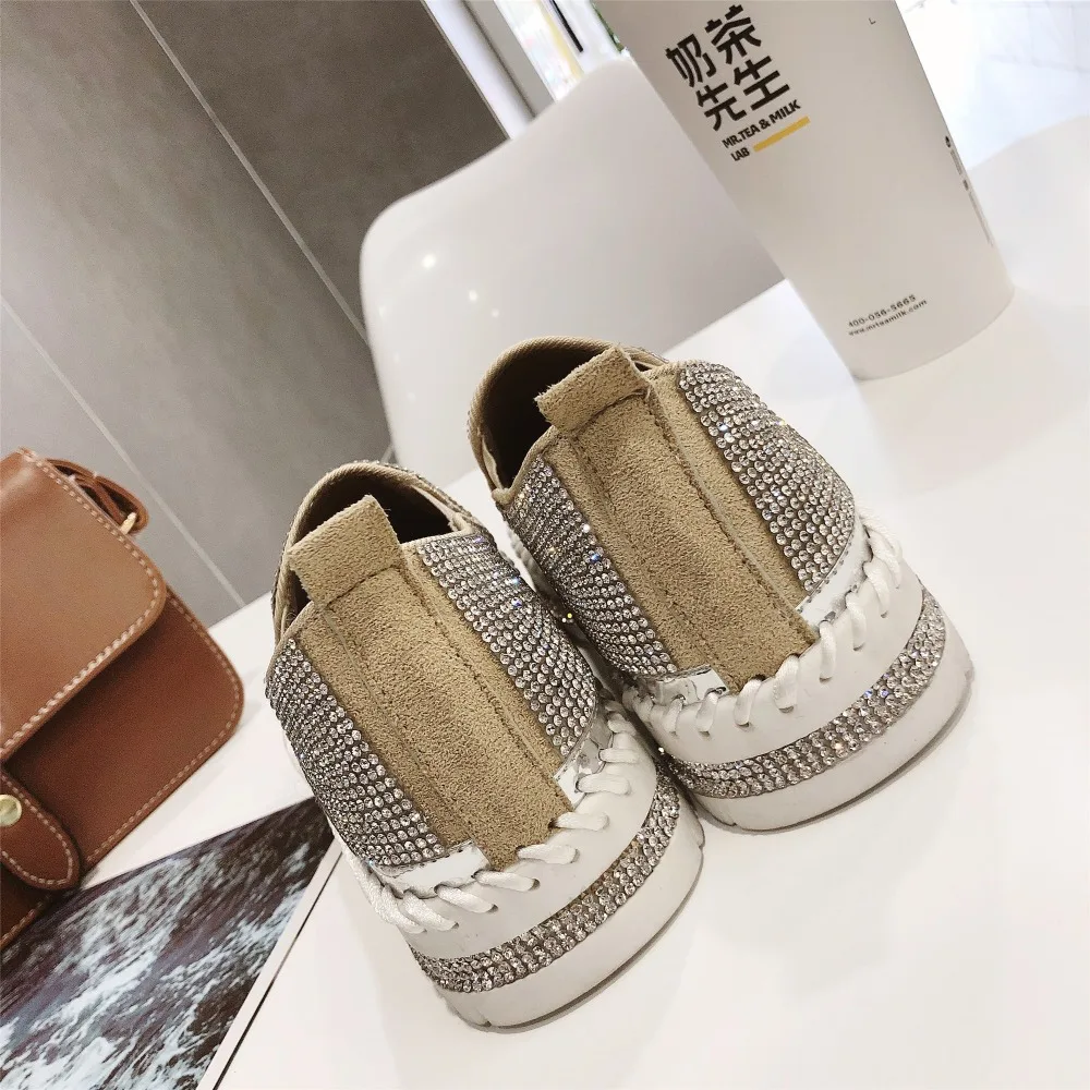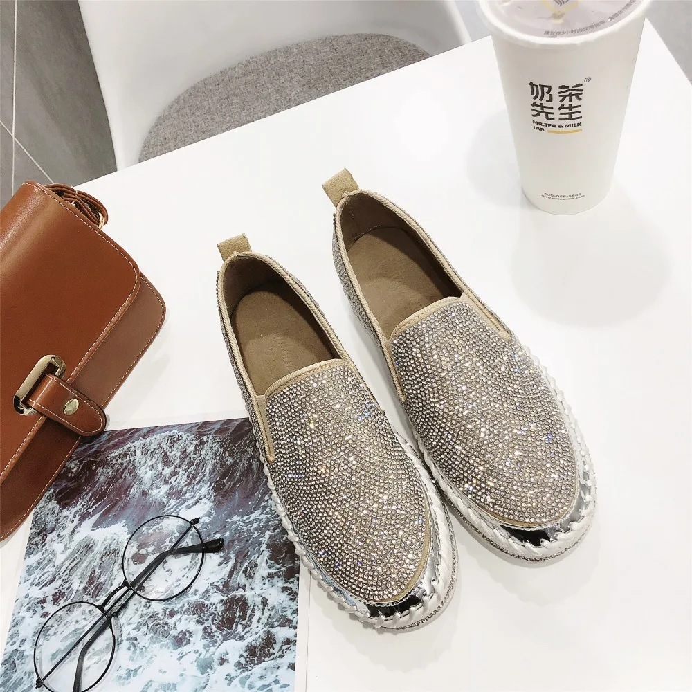 Женские туфли на плоской подошве, с блестками, со стразами, весна-о...