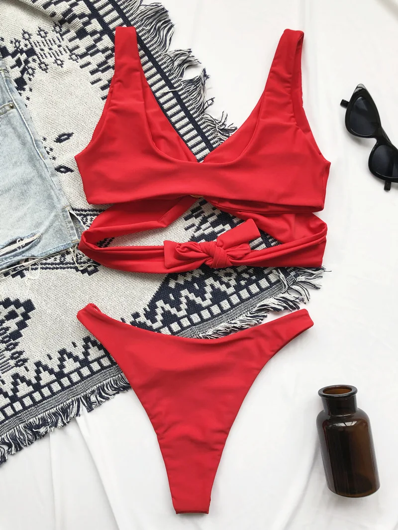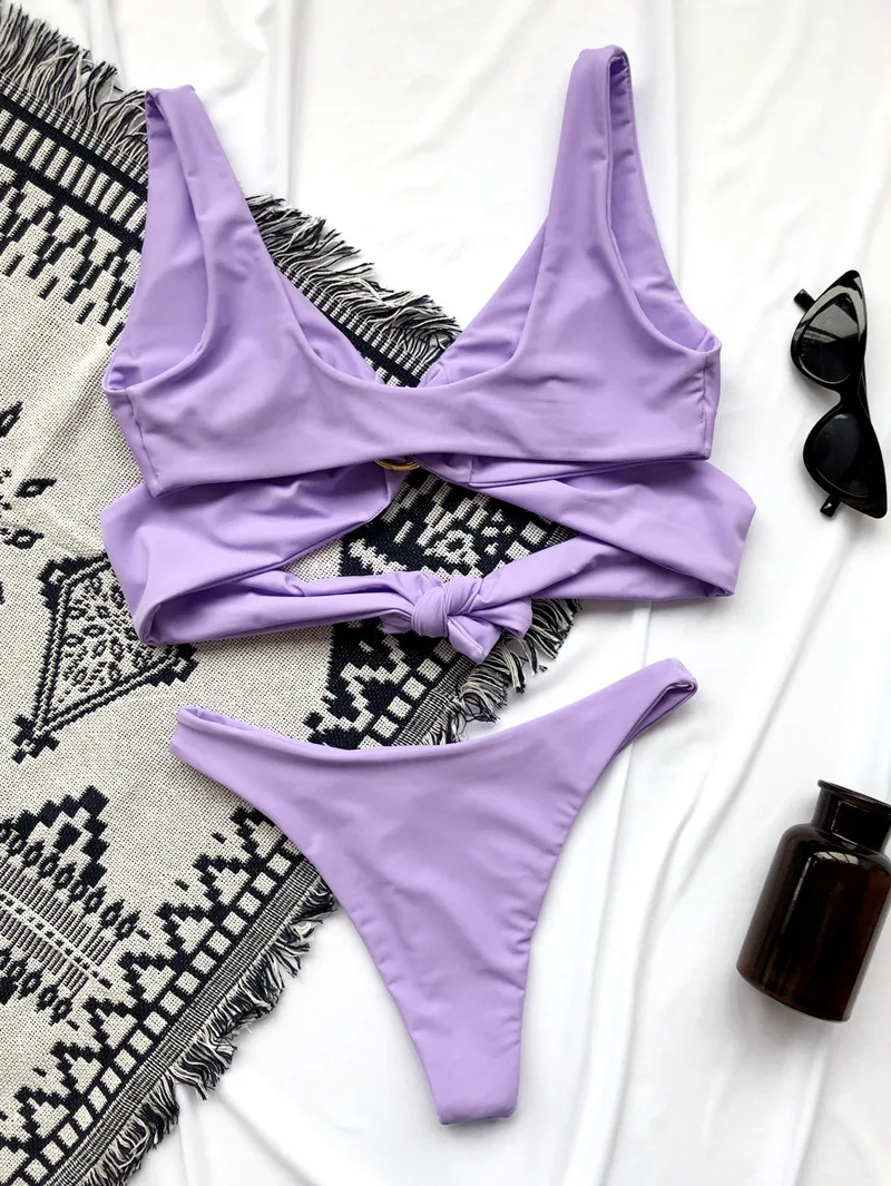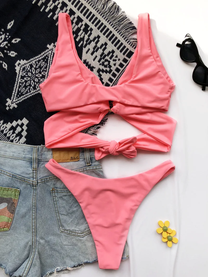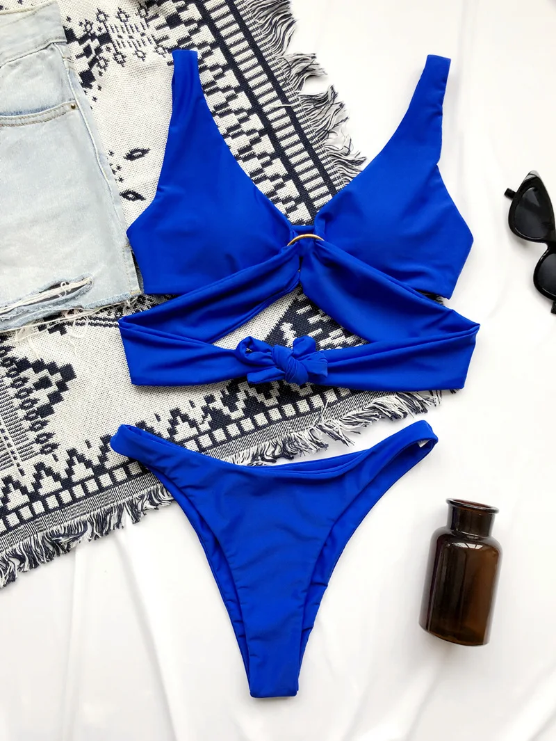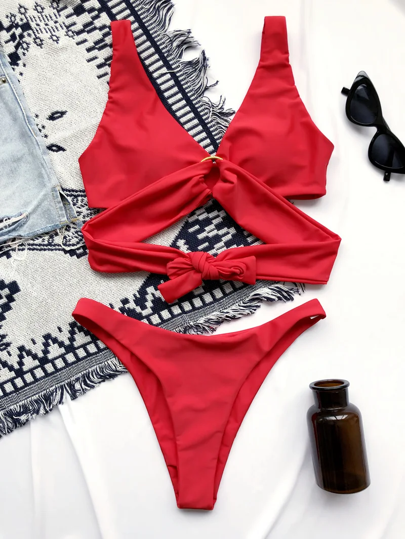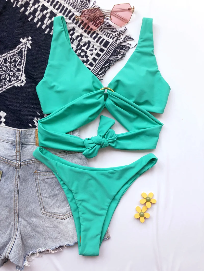 2022 женские бикини женские Купальники пуш-ап купальники женские сексуальные бикини с узлом цельные купальные костюмы однотонный комплект бикини