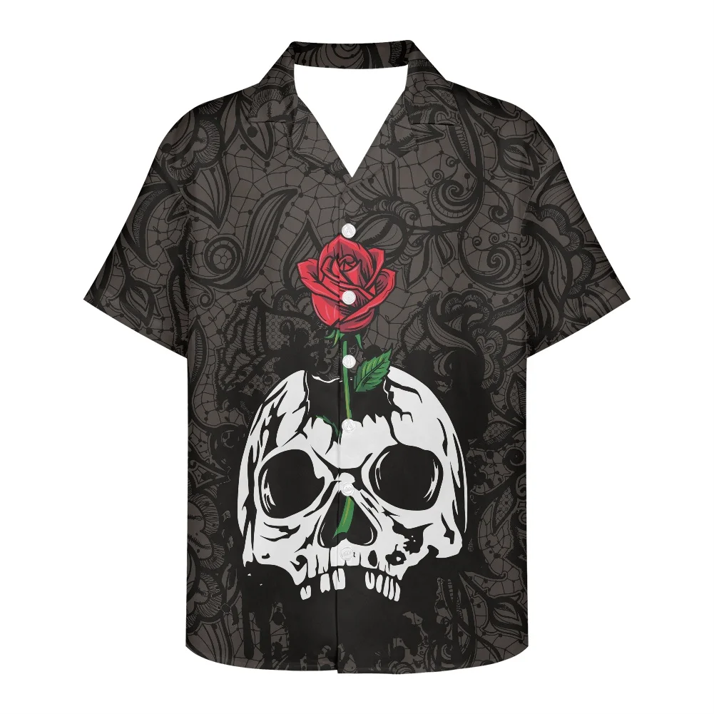 Мужские панковские футболки с черепом на пуговицах, Летние Гавайски...