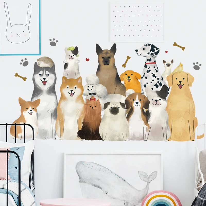 LuanQI Мультяшные кавайные собаки настенные Стикеры для детской комнаты декор для детского сада наклейки для щенков виниловые наклейки для домашнего декора