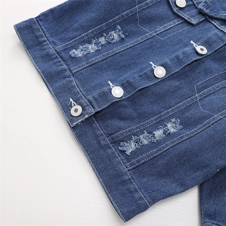 Детские джинсовые куртки для девочек, детские пальто с мультяшным принтом, Коллекция весна-осень 2022, модная детская верхняя одежда, рваные джинсы, куртки, джинсы
