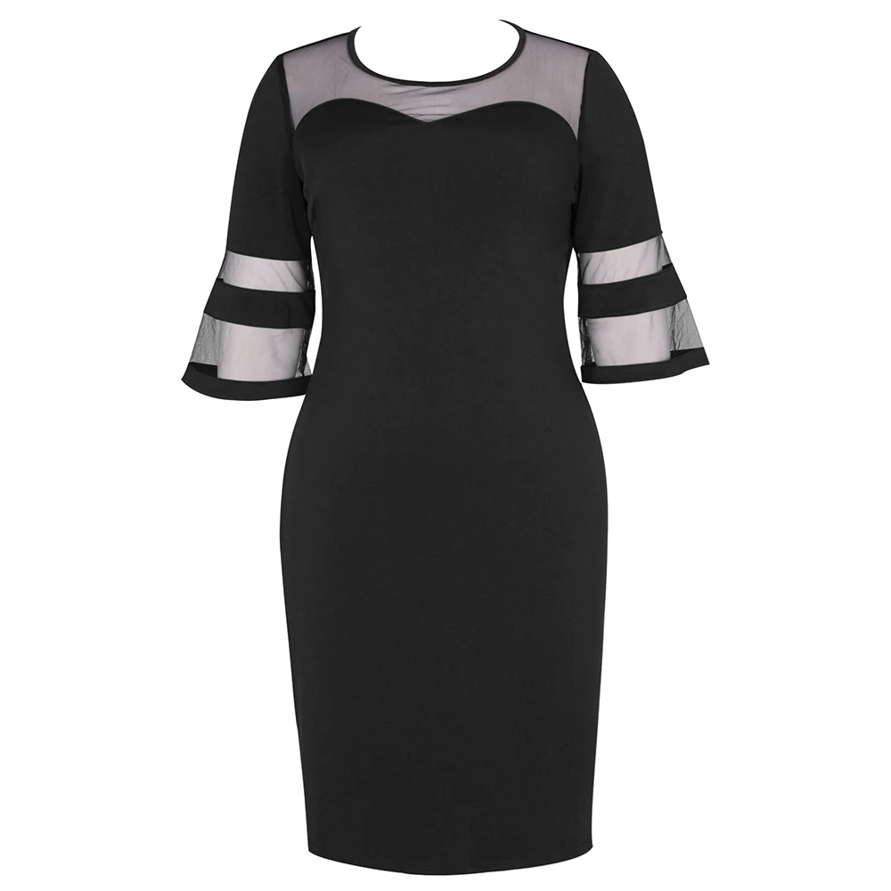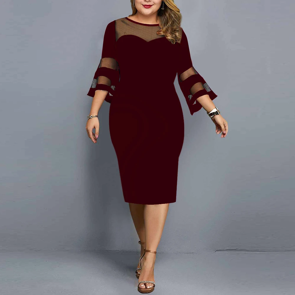 Женское платье больших размеров 4XL 5XL, вечерние модные элегантные сетчатые платья с длинным рукавом, облегающее вечернее Повседневное платье, женская одежда большого размера