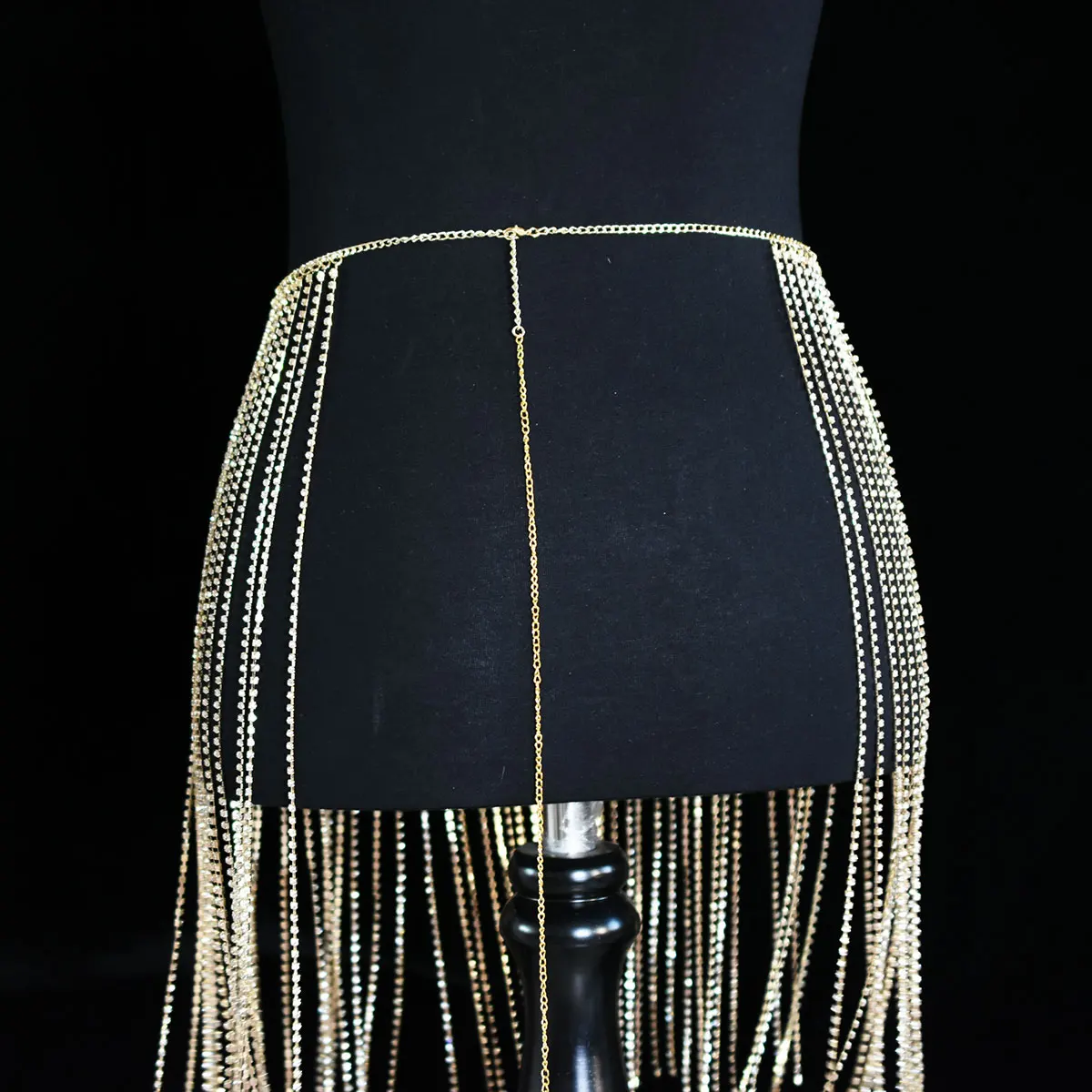 Блестящее платье с кисточками стразы сексуальное боди ювелирные изделия цепочка на талию модная женская короткая юбка для девочки Свадебные аксессуары