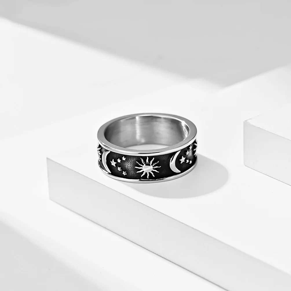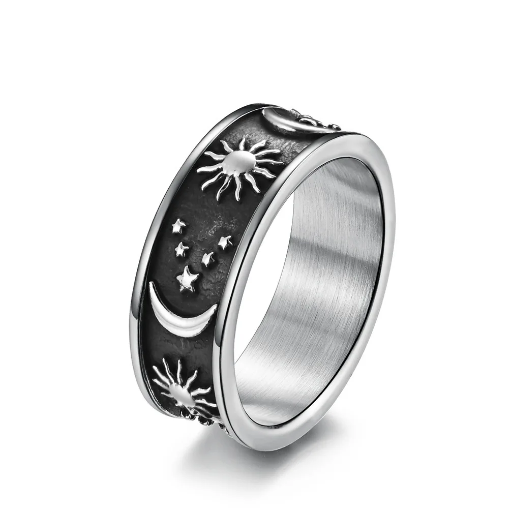 8 мм Нержавеющаясталь луна, звезды, солнце кольцо для Для женщин му...