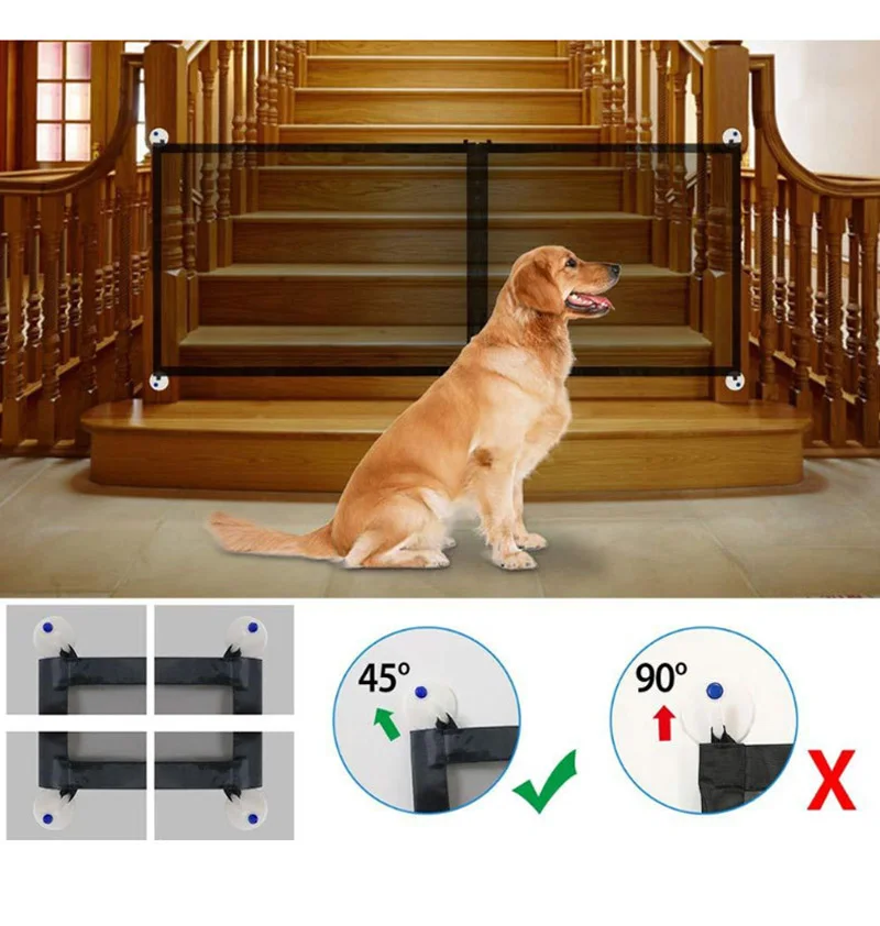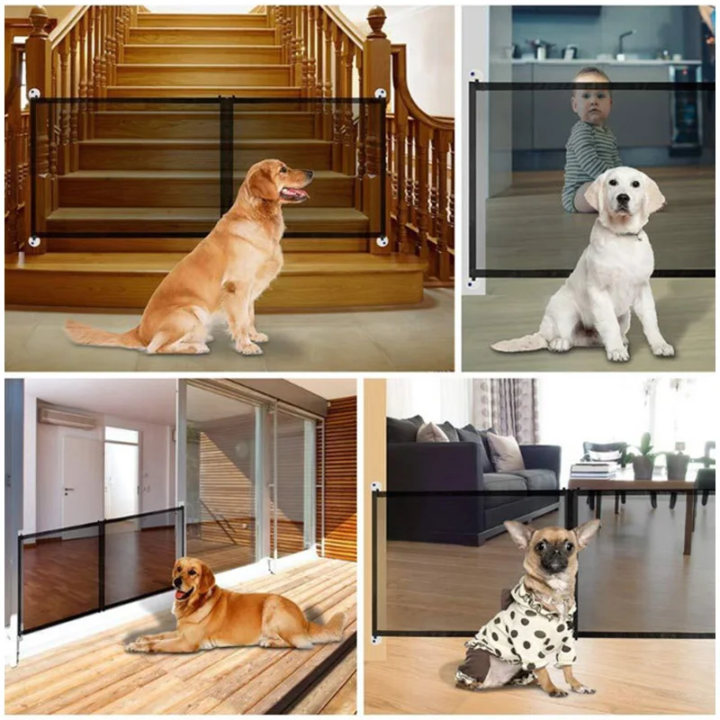 82 дюйма, волшебные ворота для собак, высокий забор на молнии, сетчатые ворота, съемные для дома, двери, лестницы, максимальная ширина 82,6 дюйма