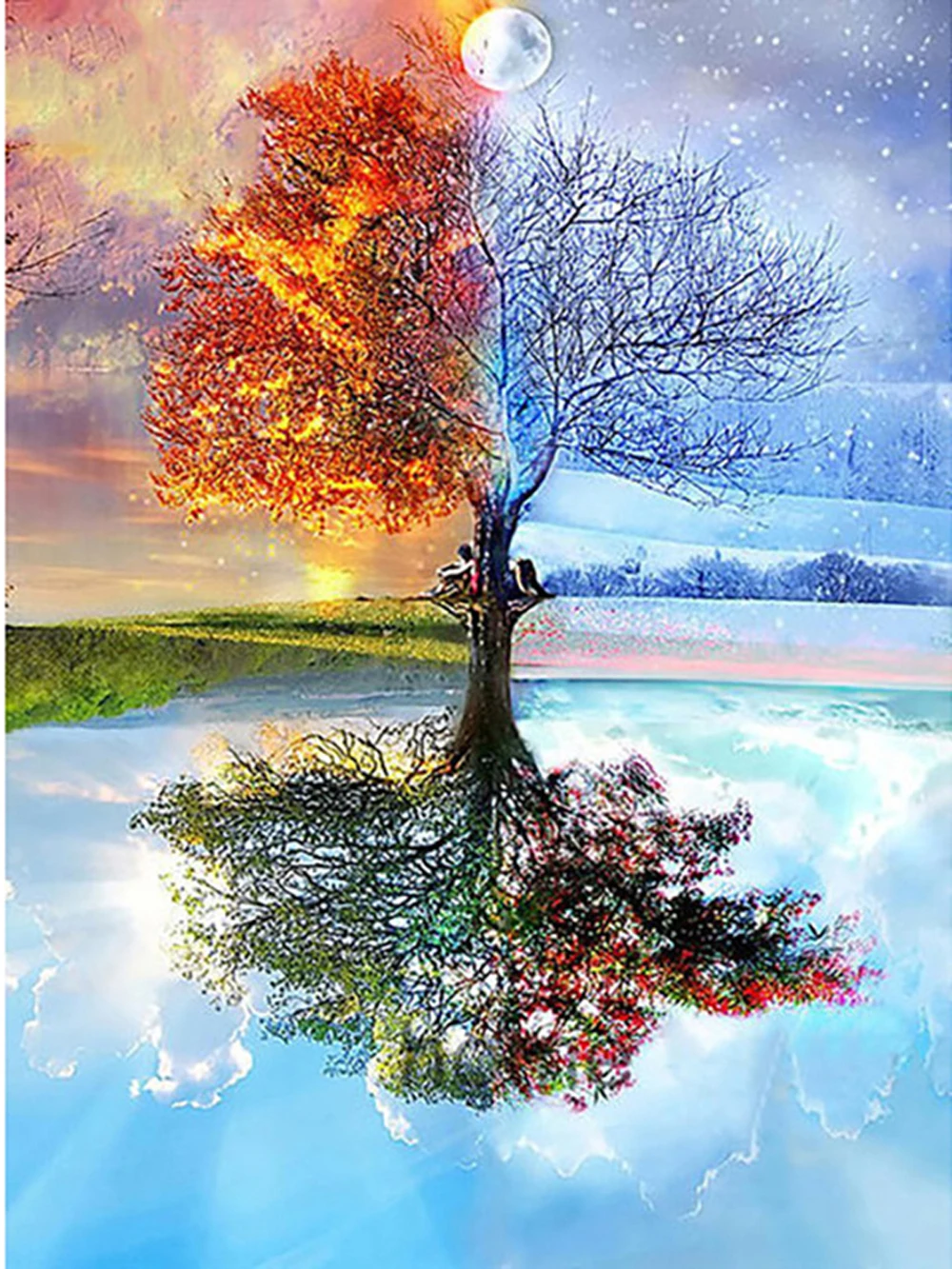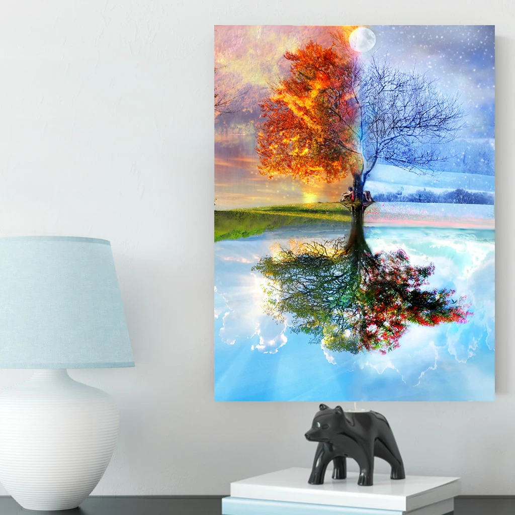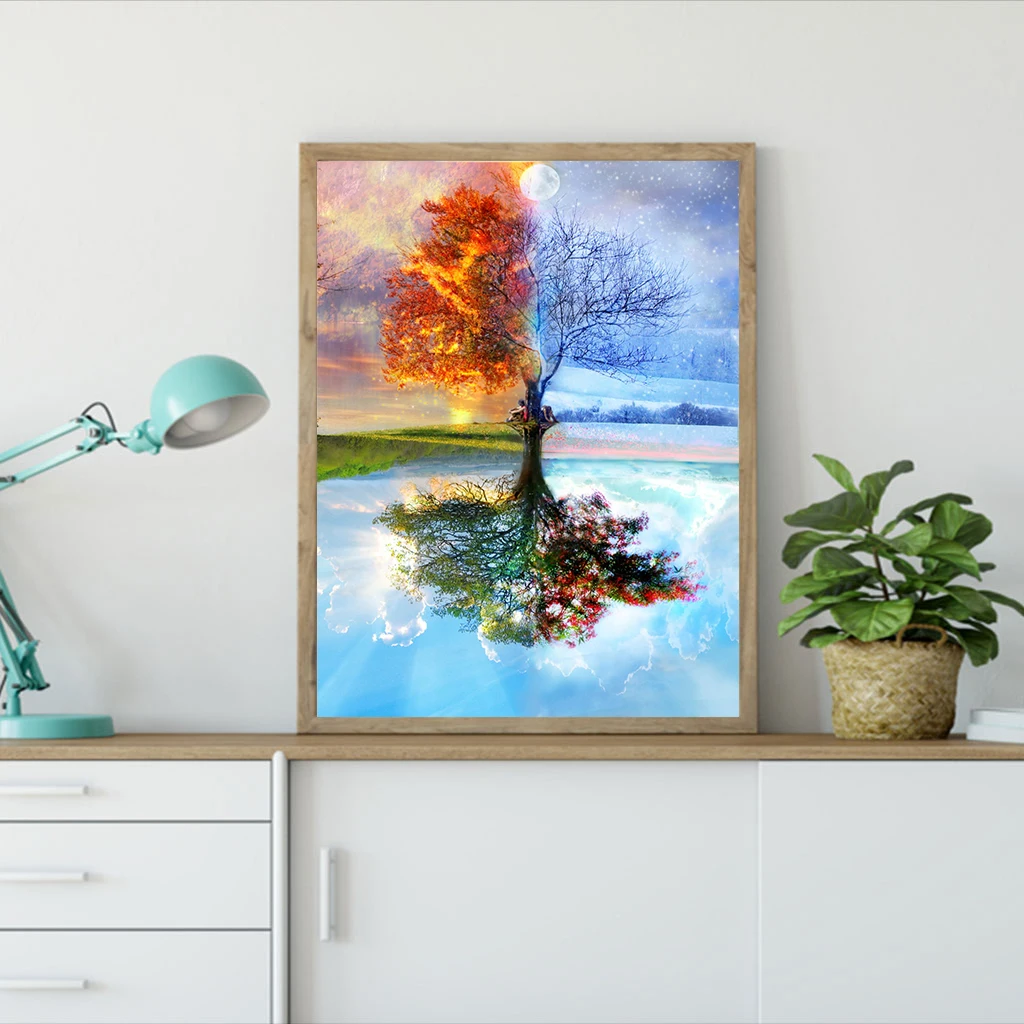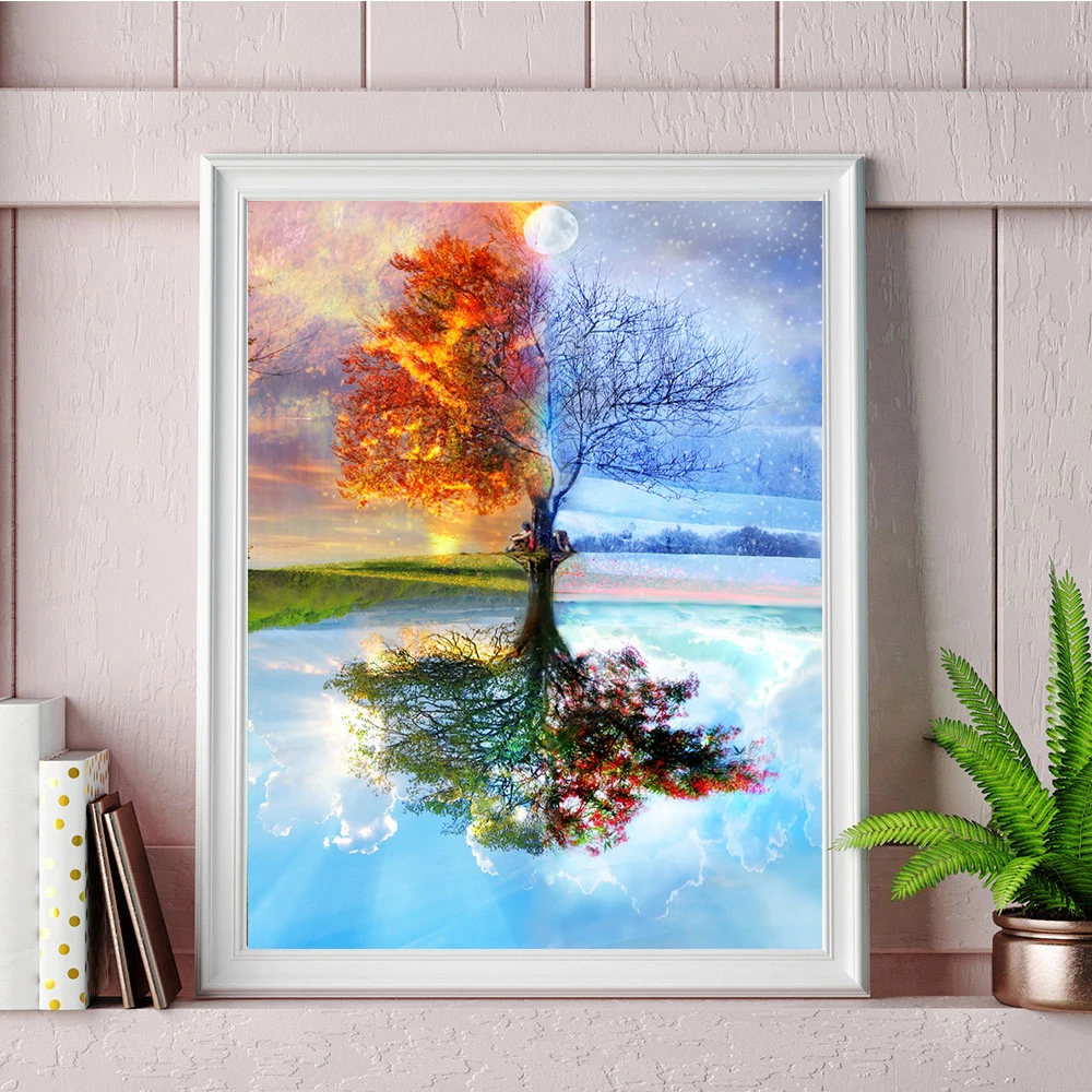 Алмазная живопись сделай сам, волшебное дерево 5D, алмазная вышивка, мозаика, четыре сезона, лес, пейзаж, вышивка крестиком, украшение для дома, подарок