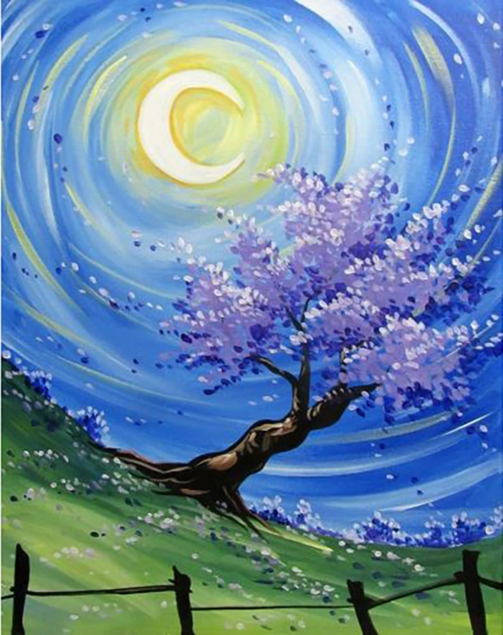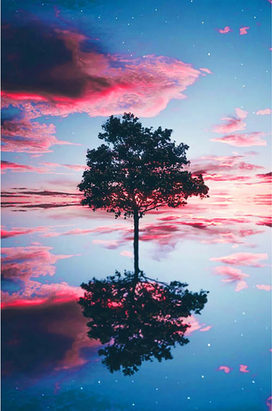 Полноформатная алмазная живопись, луна, дерево, 5D искусство, едино...